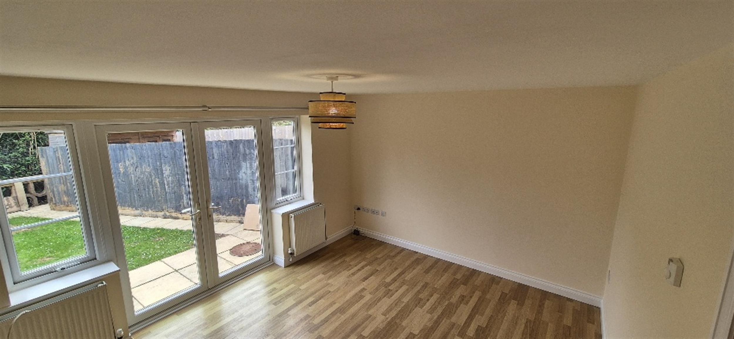 Generous sized L shaped room with windows overlooking the rear garden.