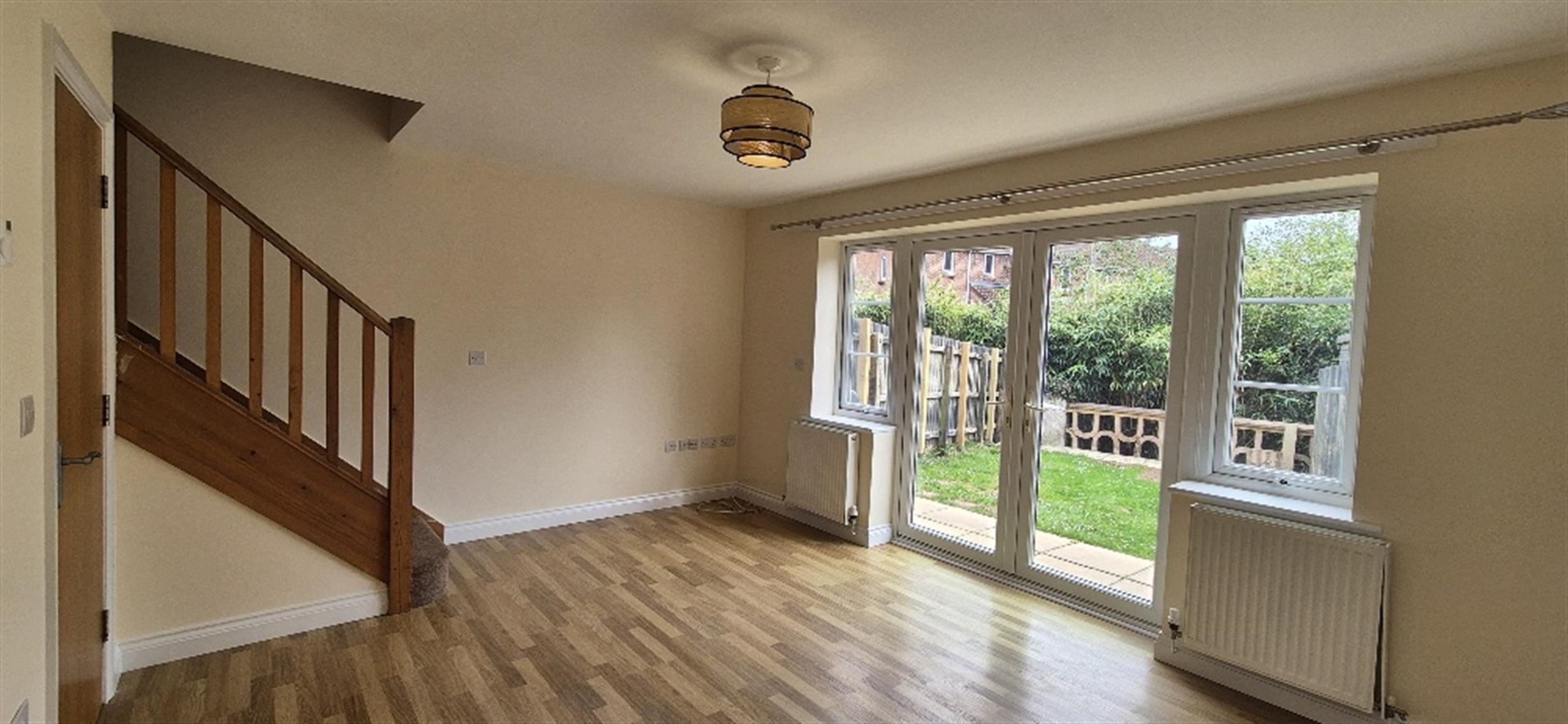 French doors leading out onto the garden. Stairs to the first floor.