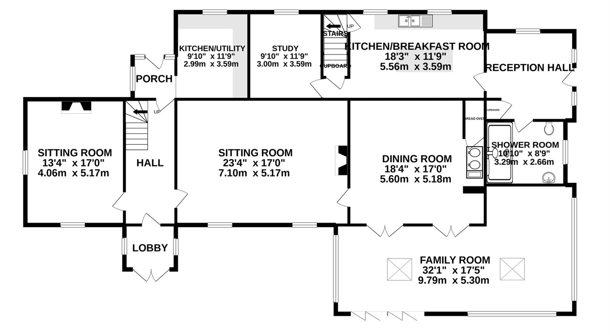 Family Room 32"1 (9.79m) x 17'5" (5.30m)