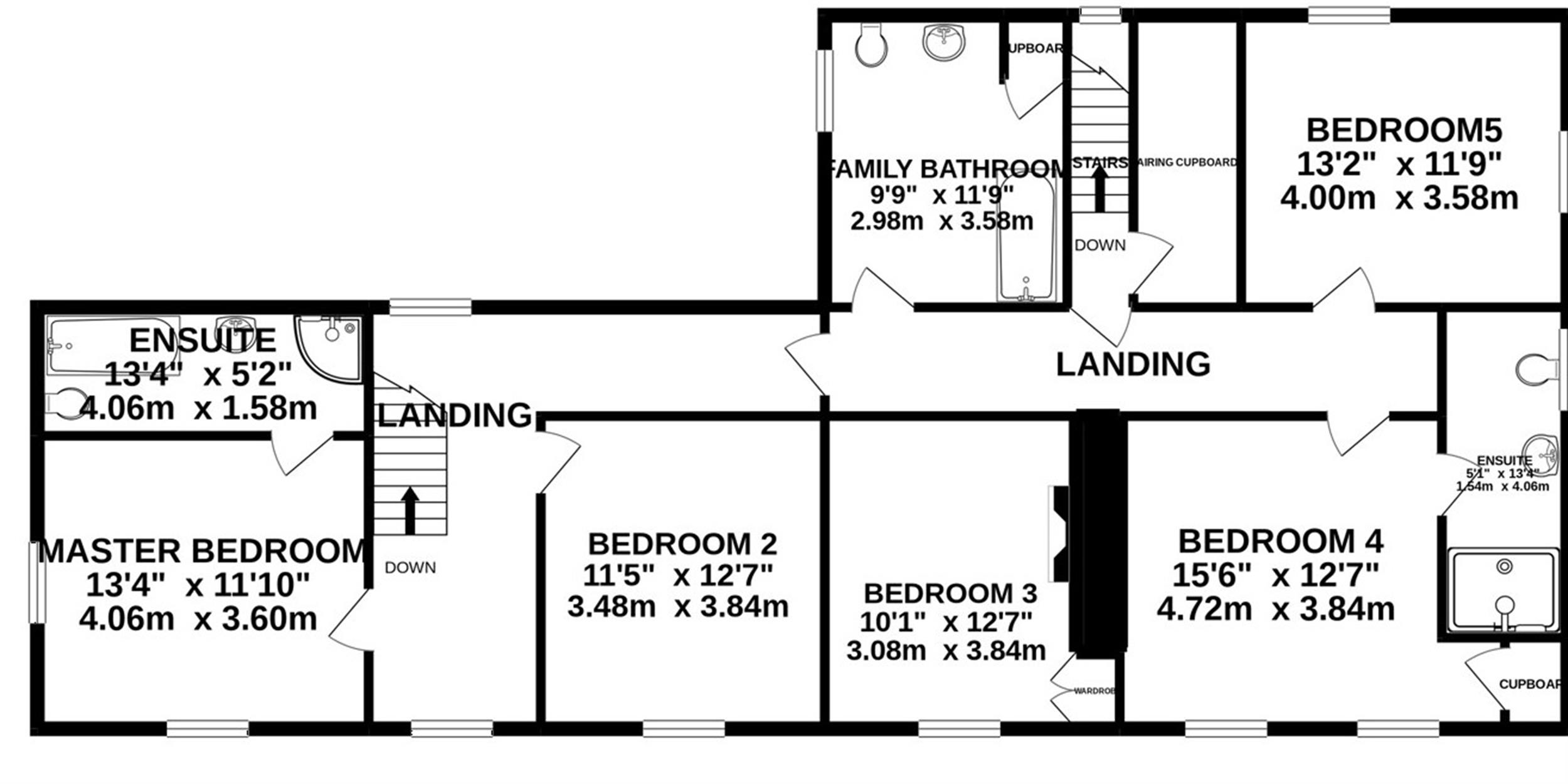 Bedroom 5 13' 2" (4.01m) x 11' 9" (3.58m)