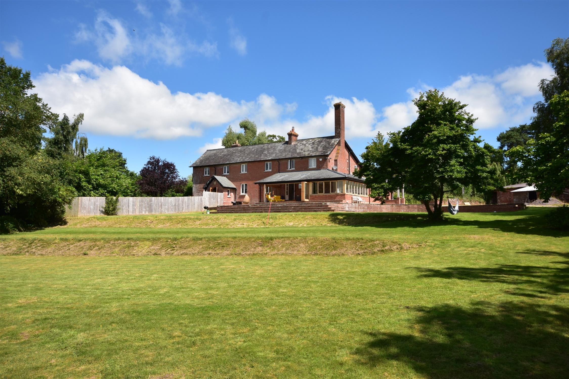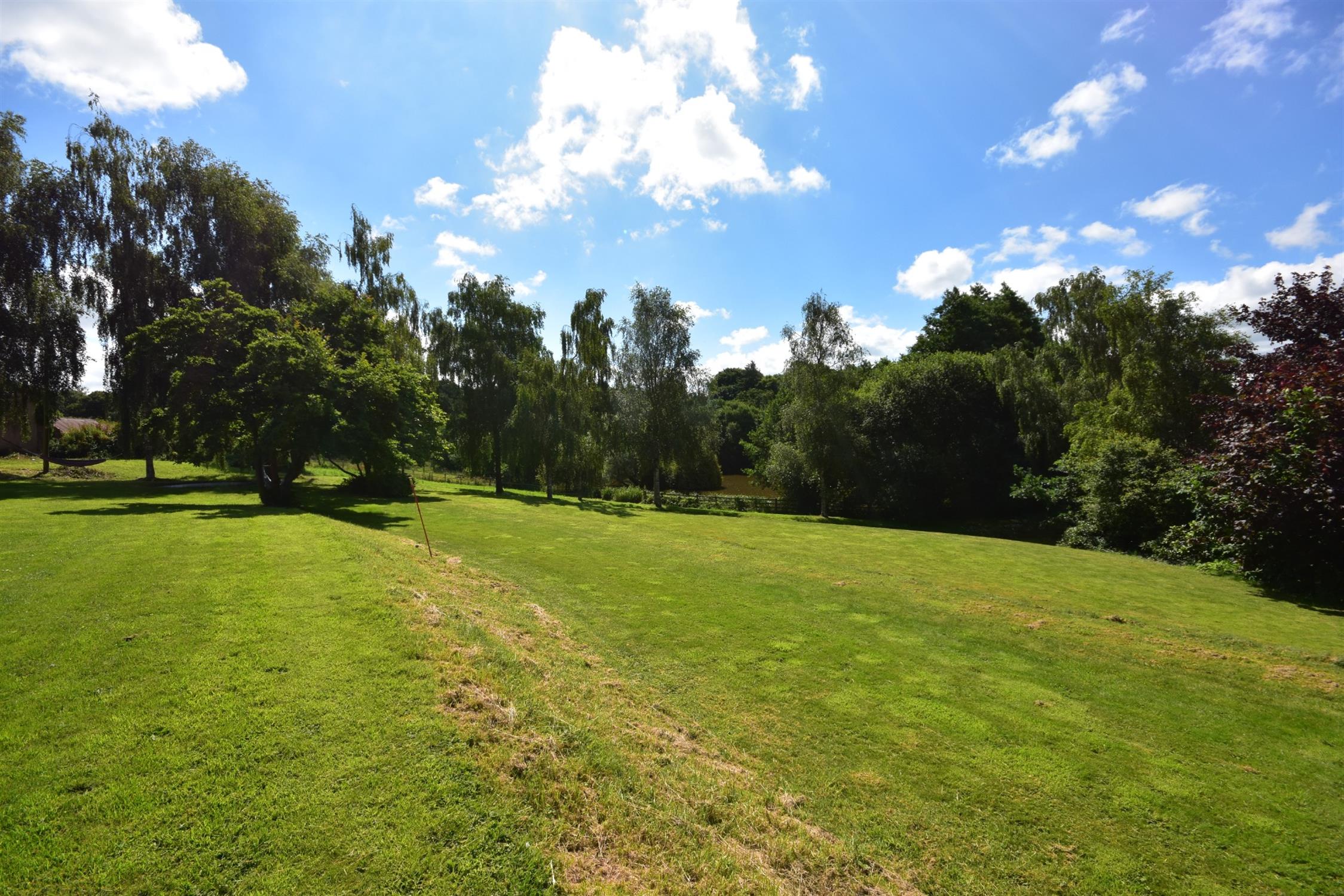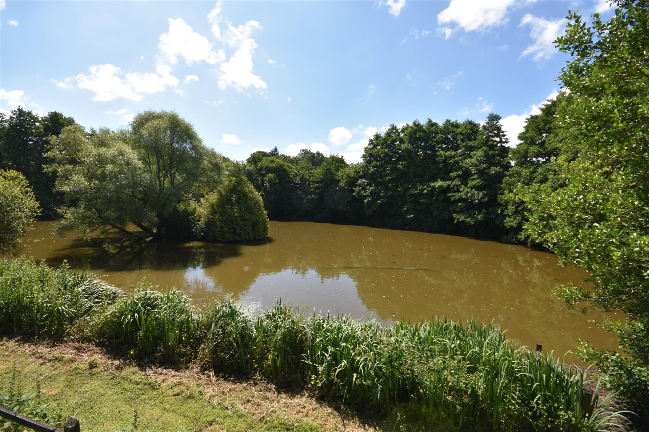 The house has fine views down across its gardens facing South to the lake below. To the front of the house is a large flagstone terrace and steps leading to the double doors to the family sitting room. Below this terrace is the main area of lawn with containing a wide variety of species including magnolia, rhododendron, hydrangeas and various broadleaf trees. Beyond this, the main gravel drive curves back down past a number of silver birch trees to the main entrance. Beyond the drive, across a further lawned area, is the fishing lake which is an acre of fully stocked carp and has a river running through it and therefore, requires no filtering.
