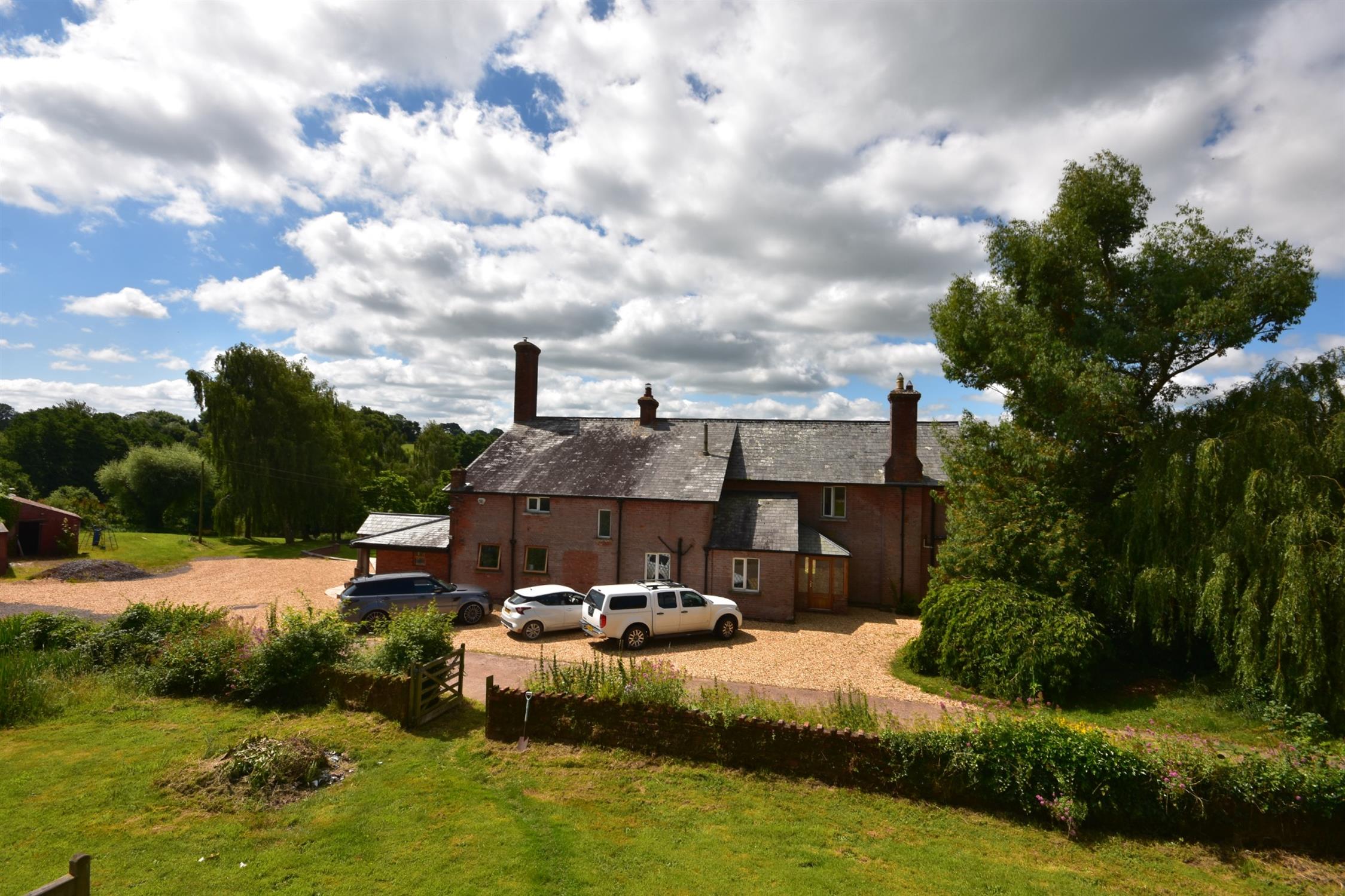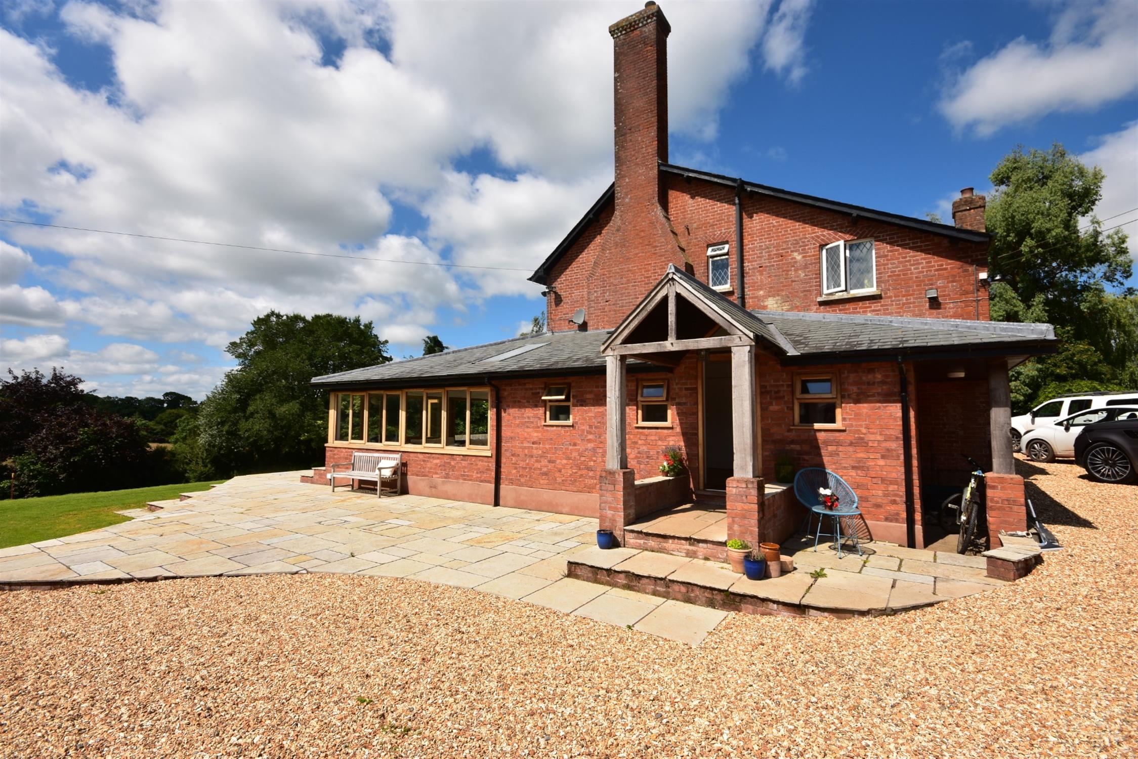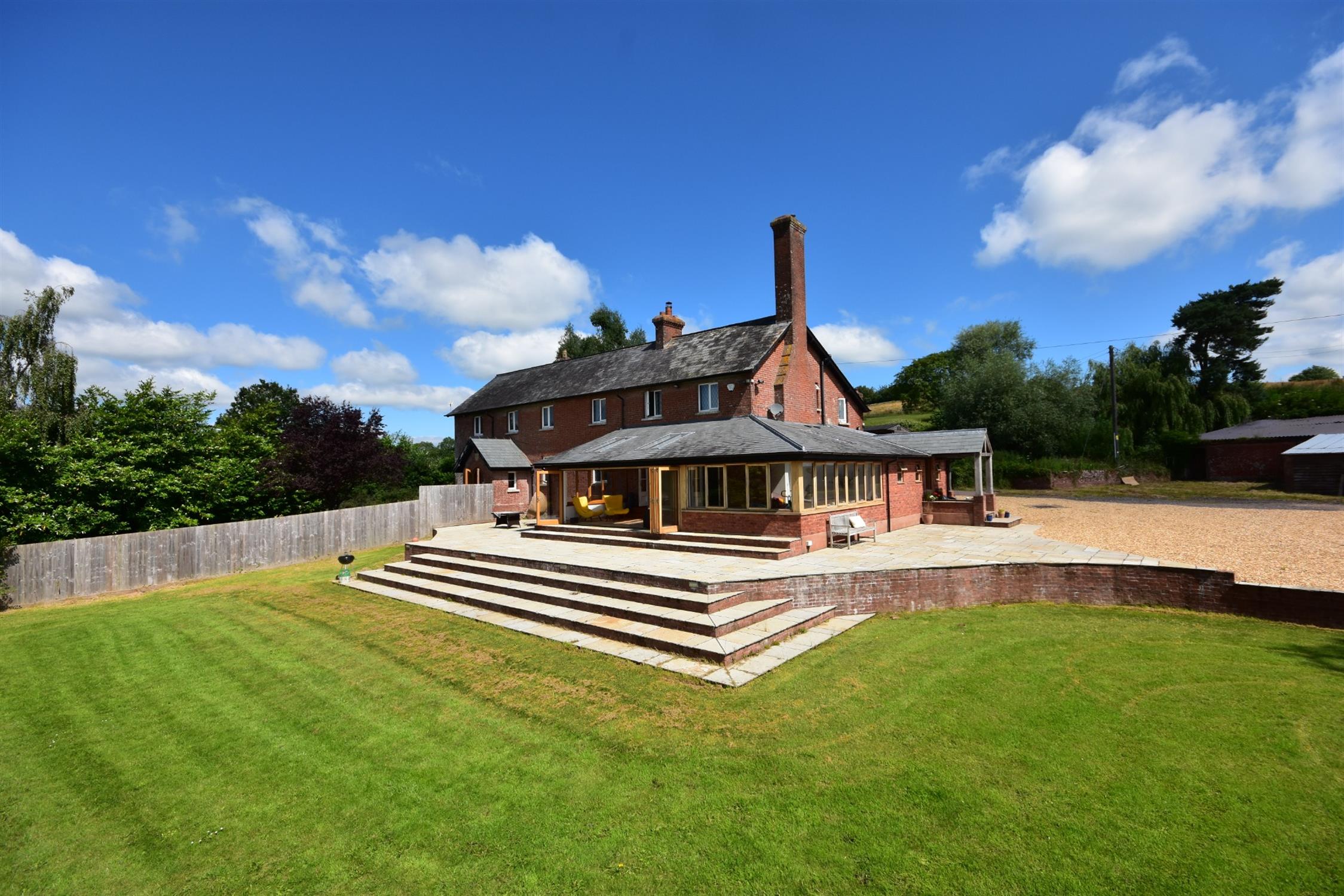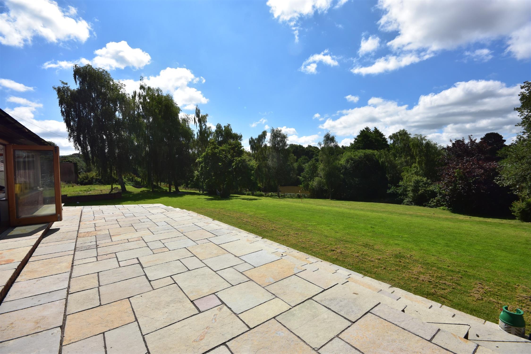 The house has fine views down across its gardens facing South to the lake below. To the front of the house is a large flagstone terrace and steps leading to the double doors to the family sitting room. Below this terrace is the main area of lawn with containing a wide variety of species including magnolia, rhododendron, hydrangeas and various broadleaf trees. Beyond this, the main gravel drive curves back down past a number of silver birch trees to the main entrance. Beyond the drive, across a further lawned area, is the fishing lake which is an acre of fully stocked carp and has a river running through it and therefore, requires no filtering.