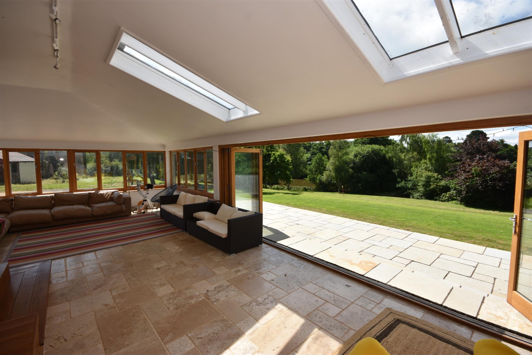 A particularly large bright room with double glazed windows and double glazed roof lights. Bi-fold doors leading out onto the patio. Stone flooring throughout. Underfloor heating.
