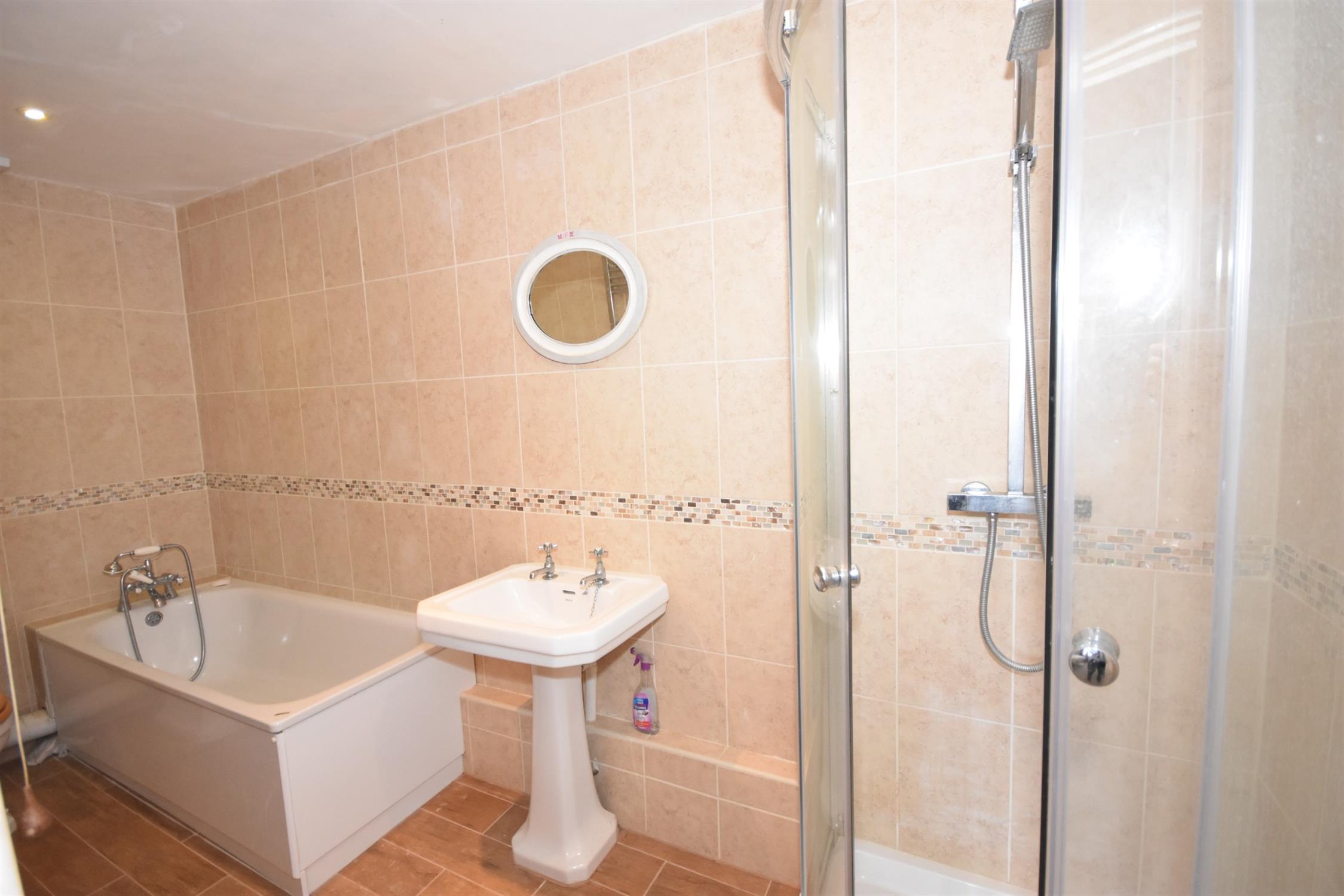 Bath with mixer taps and shower attachment. W.C. Wash hand basin. Heated towel rail.