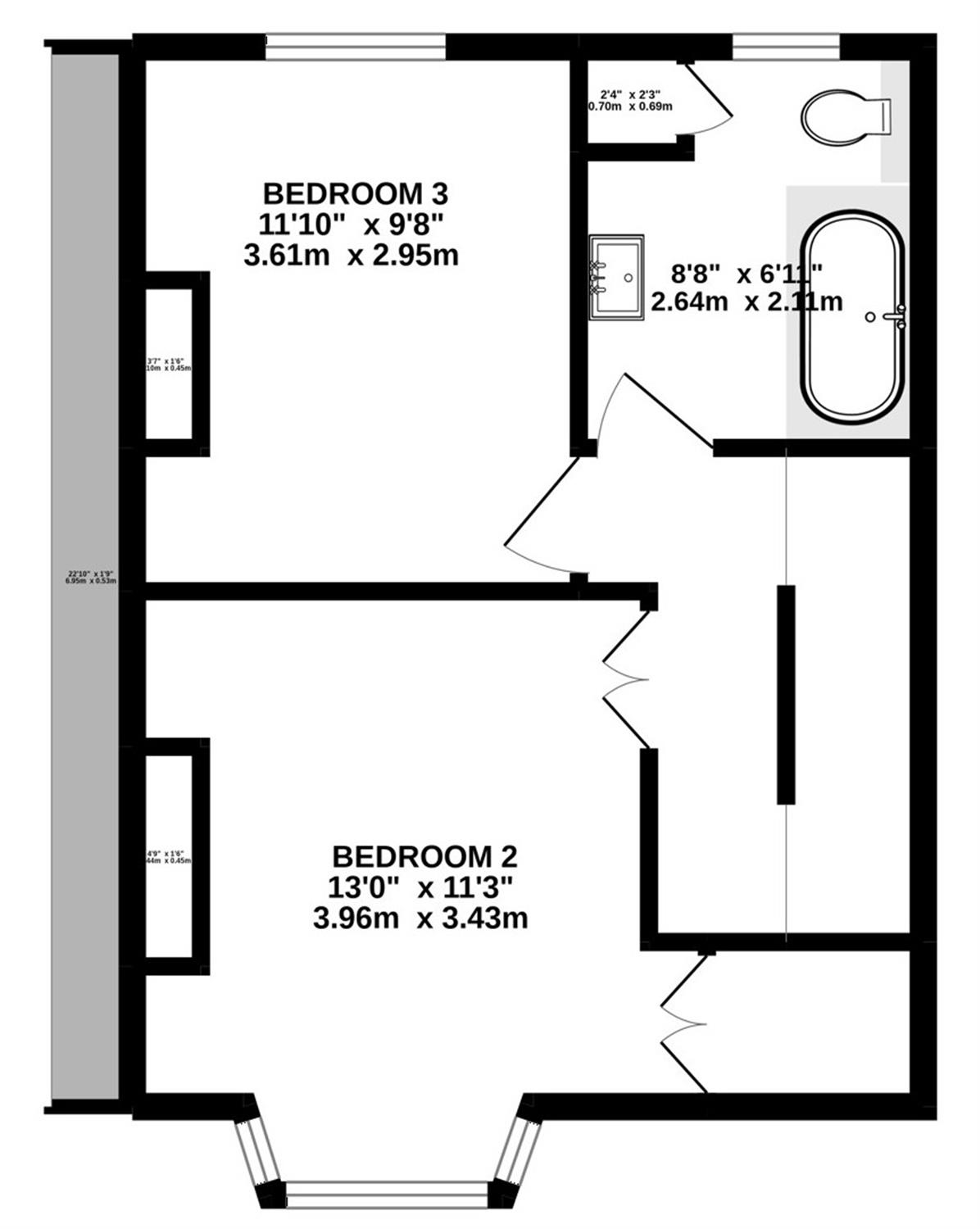 BEDROOM 2 13' (3.96m) Into Bay x 11' 3" (3.43m) Plus Recess
