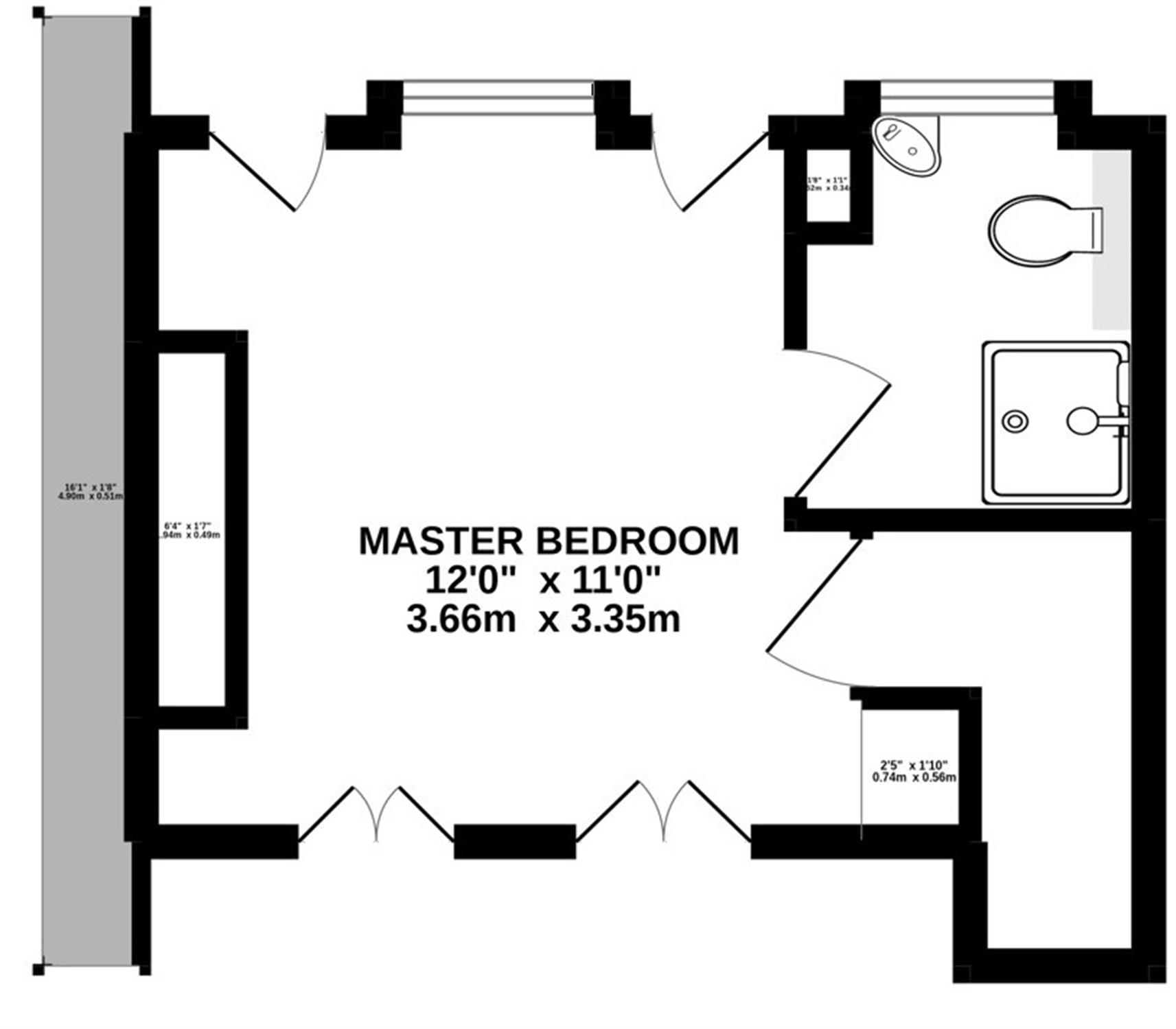 MASTER BEDROOM 12' (3.66m) x 11' (3.35m) Plus Recess - Minus En-Suite Entrance