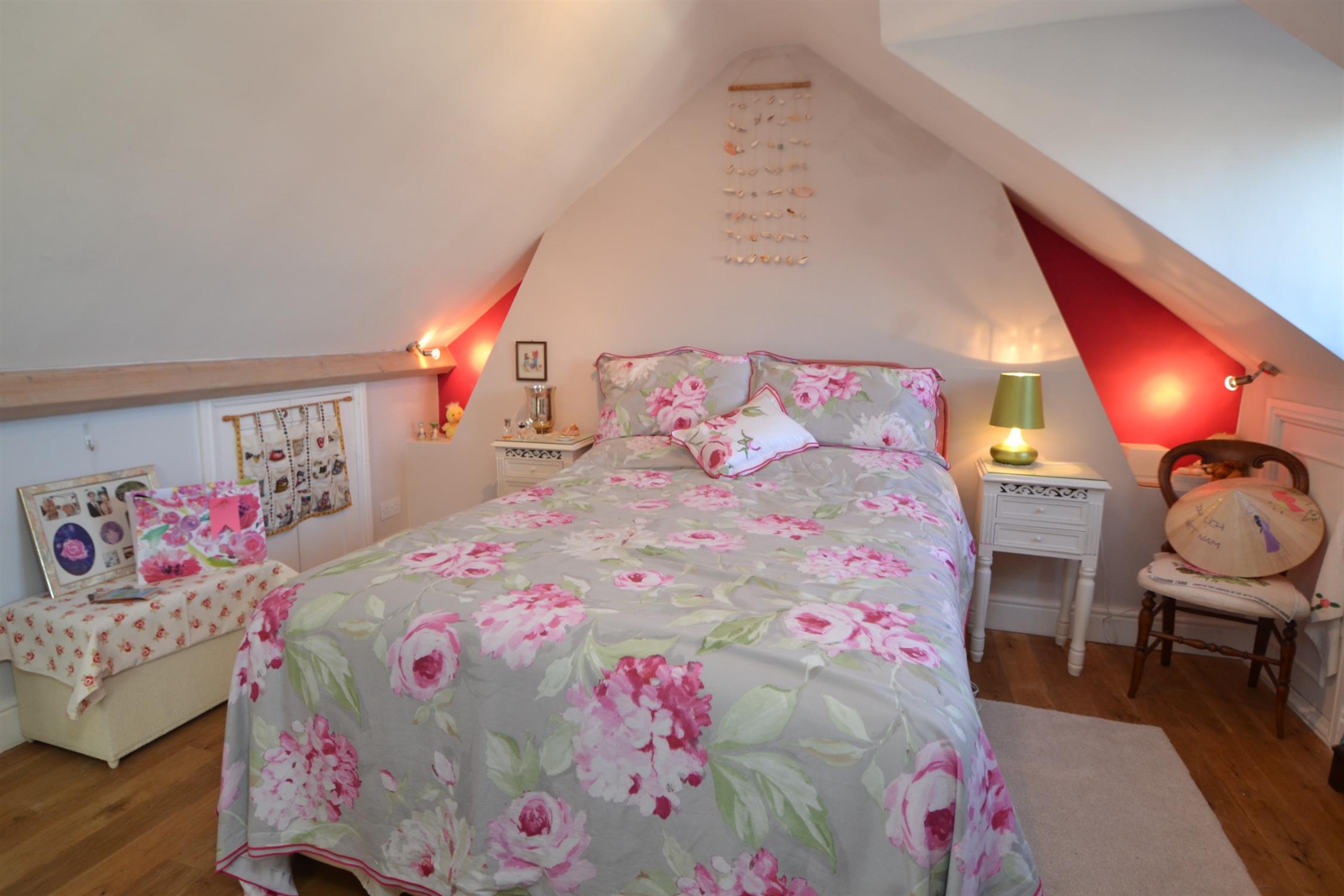 A most appealing room with dual sloping ceiling incorporating uPVC Dormer window with outlook to rear. Excellent eaves storage cupboards. Deep shelving in alcove. Radiator. Door to:-