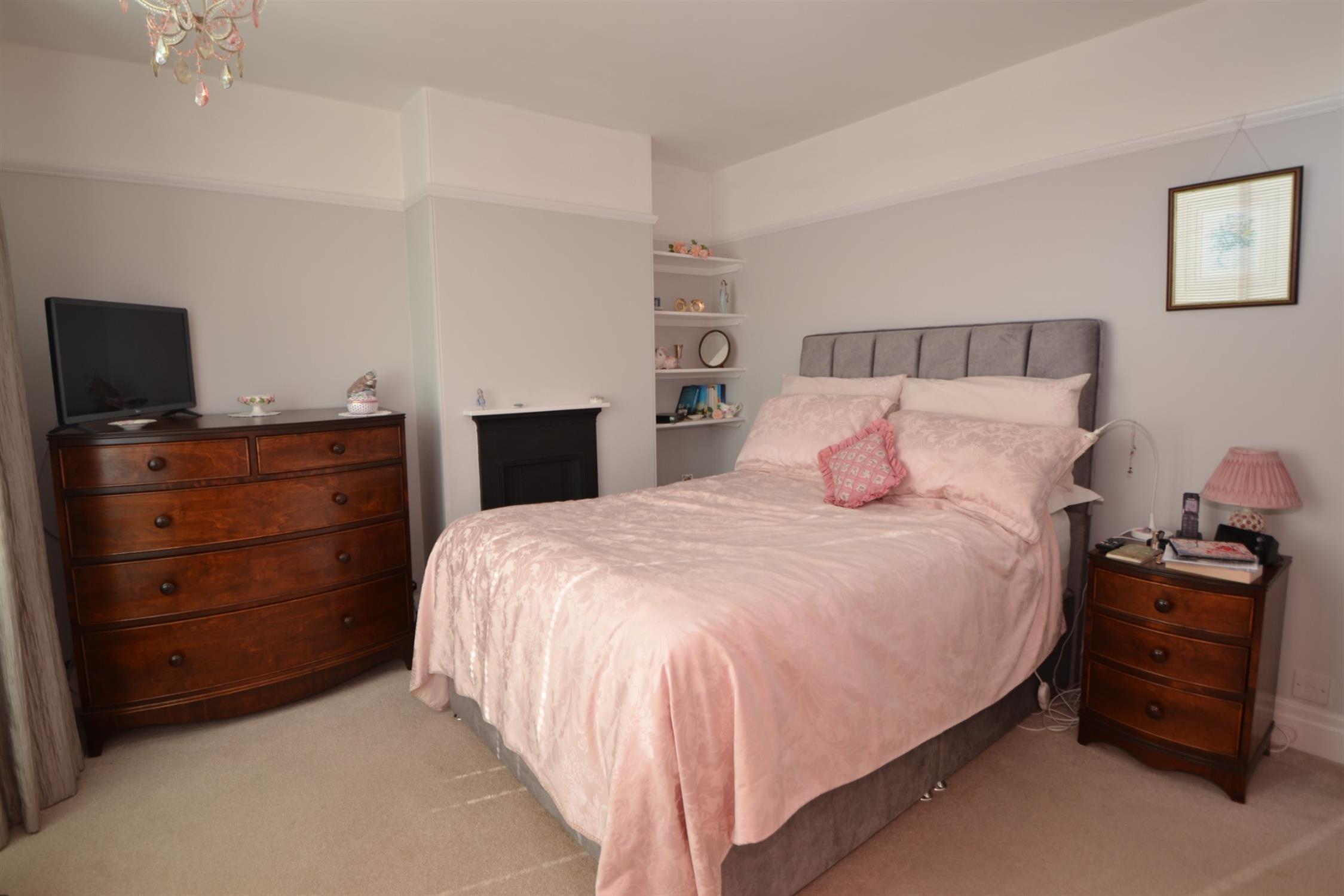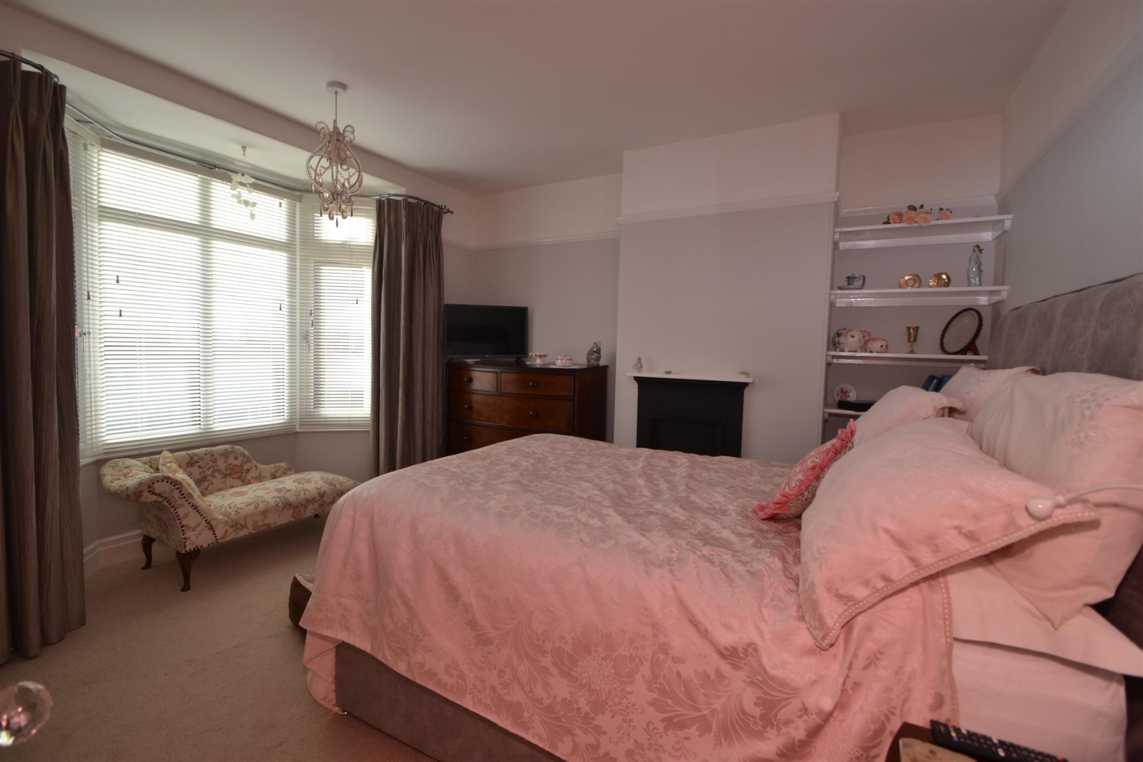 A fine room with uPVC double glazed bay window having fitted blinds to front. Original cast iron fireplace with shelving to one side. Picture rail. Radiator. Deep walk-in wadrobe cupboard with hanging and shelving. T.V. point. Telephone point.