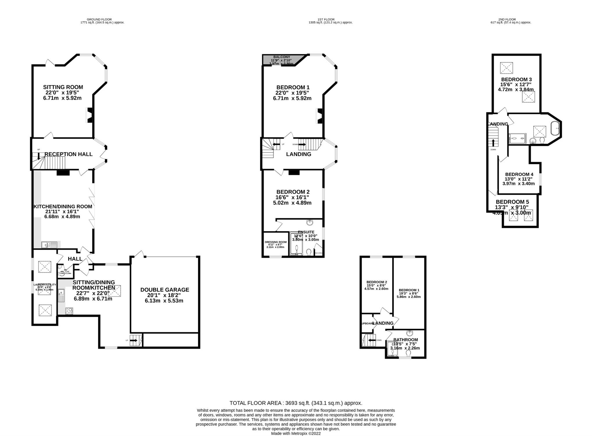 SECOND FLOOR - Further Three Bedrooms, Family Bathroom.