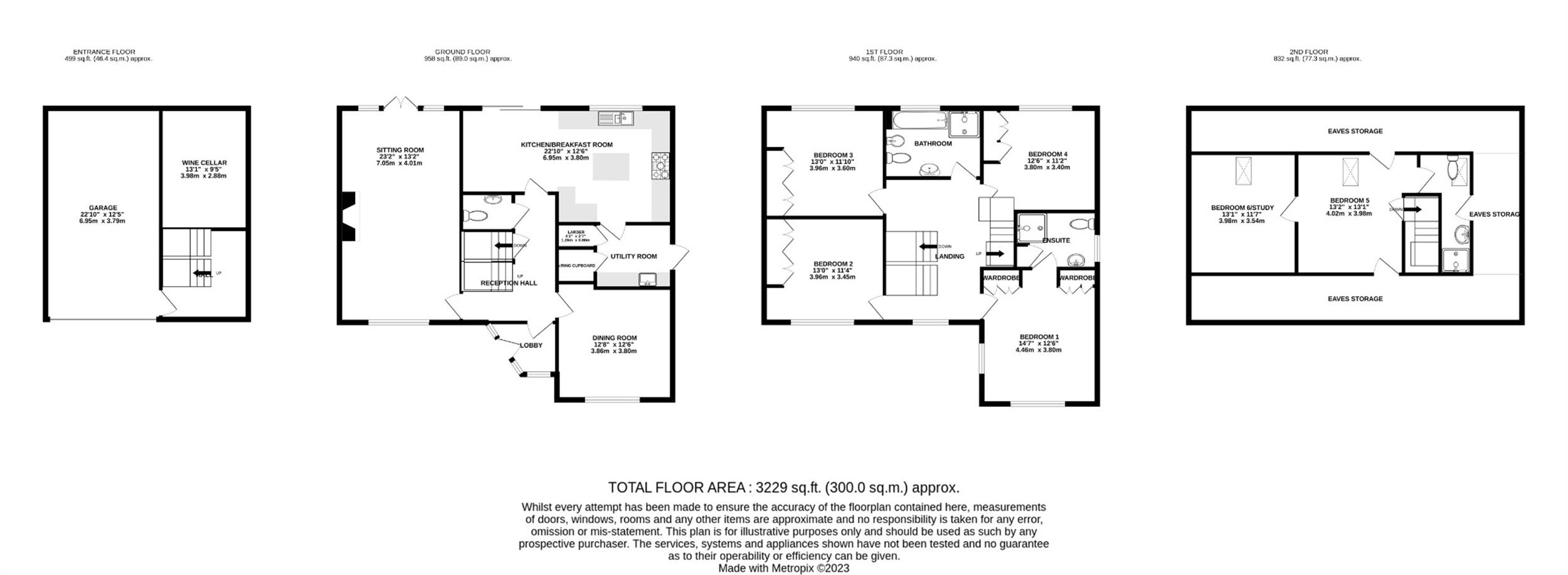 5 Double Bedrooms including master bedroom en-suite, Bedroom 6 / Study
