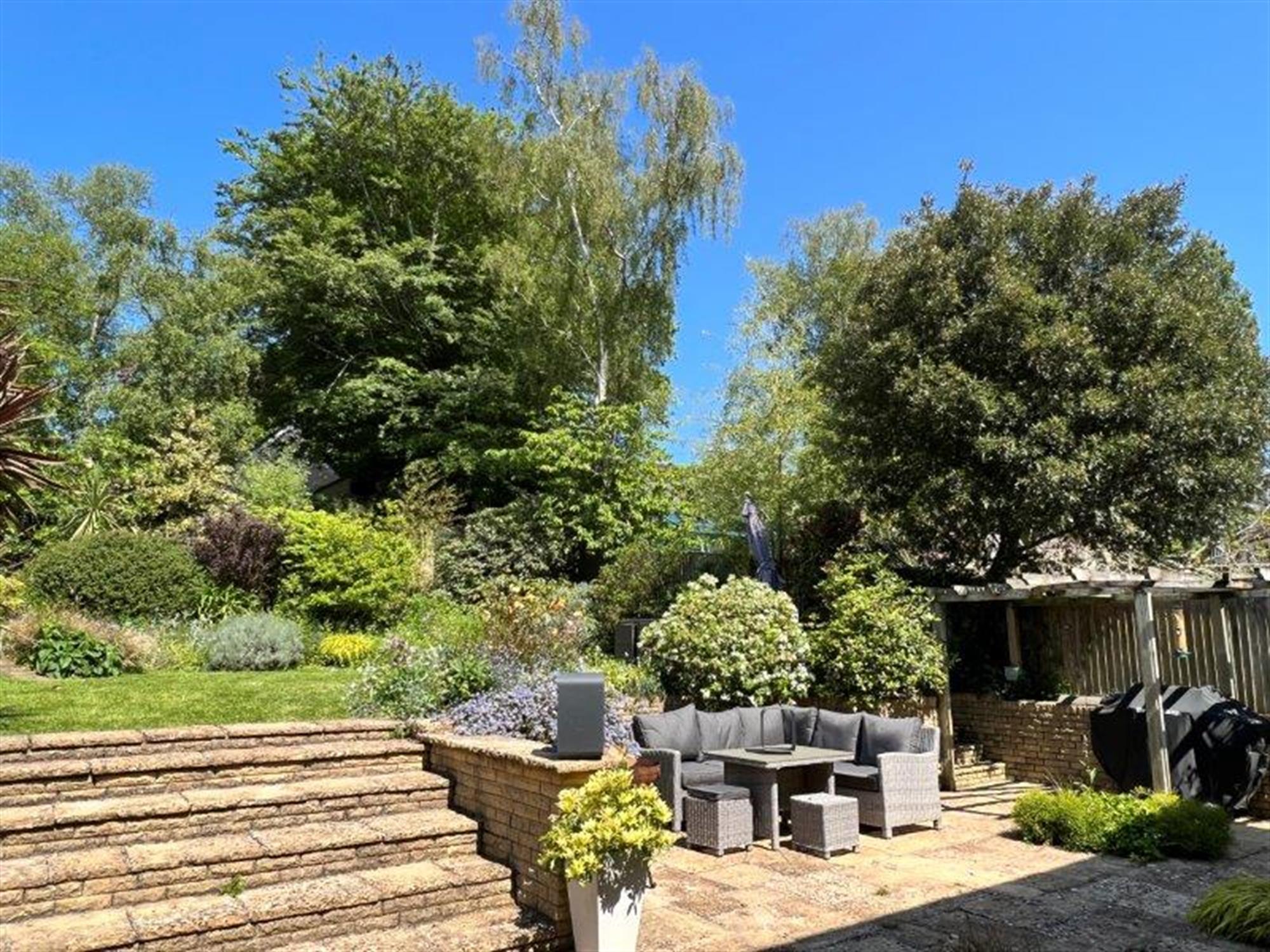 Set on a substantial plot, the home features beautifully landscaped front and back gardens and ample parking.