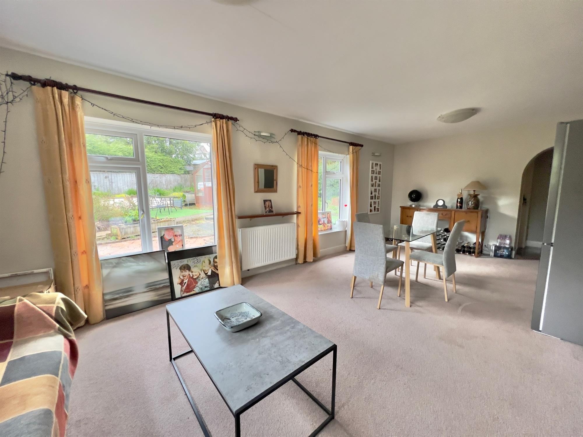 DINING ROOM: 22' 10" (6.96m) x 11' 9" (3.58m): A large spacious room with double glazed window to the side and double glazed window to the rear. Feature alcove. Two radiators.