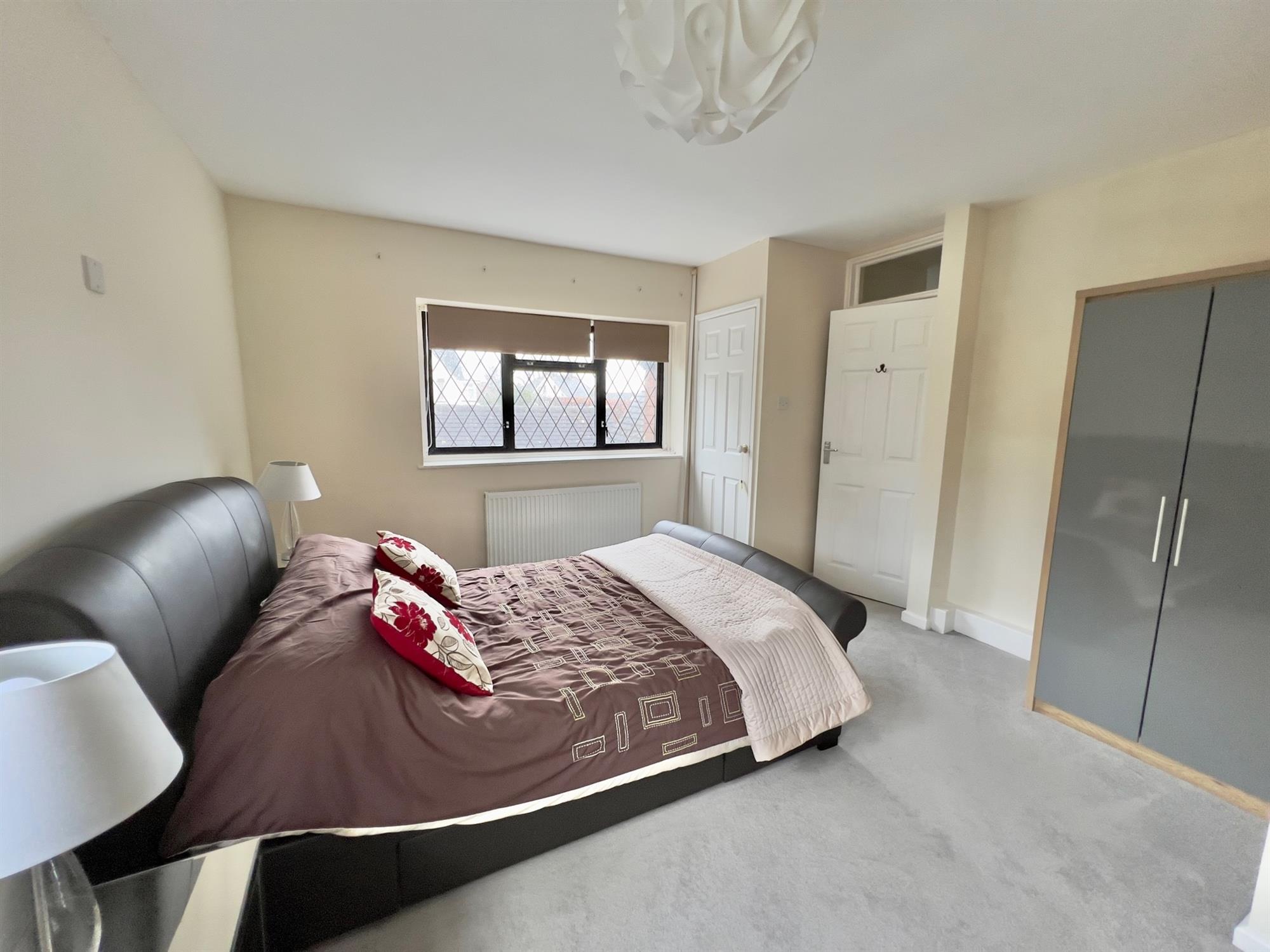 BEDROOM: 14' 9" (4.50m) x 11' 10" (3.61m): Double glazed windows to front and side. Two built-in wardrobes. Radiator.