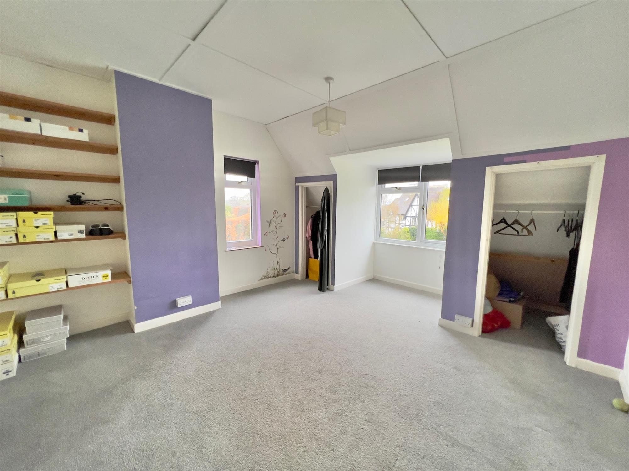 BEDROOM: 19' 9" (6.02m) x 11' 7" (3.53m): A good size bedroom with double glazed window to the front. Fitted double wardrobe and further eaves storage. Doors leading off to DRESSING ROOM and en-suite.