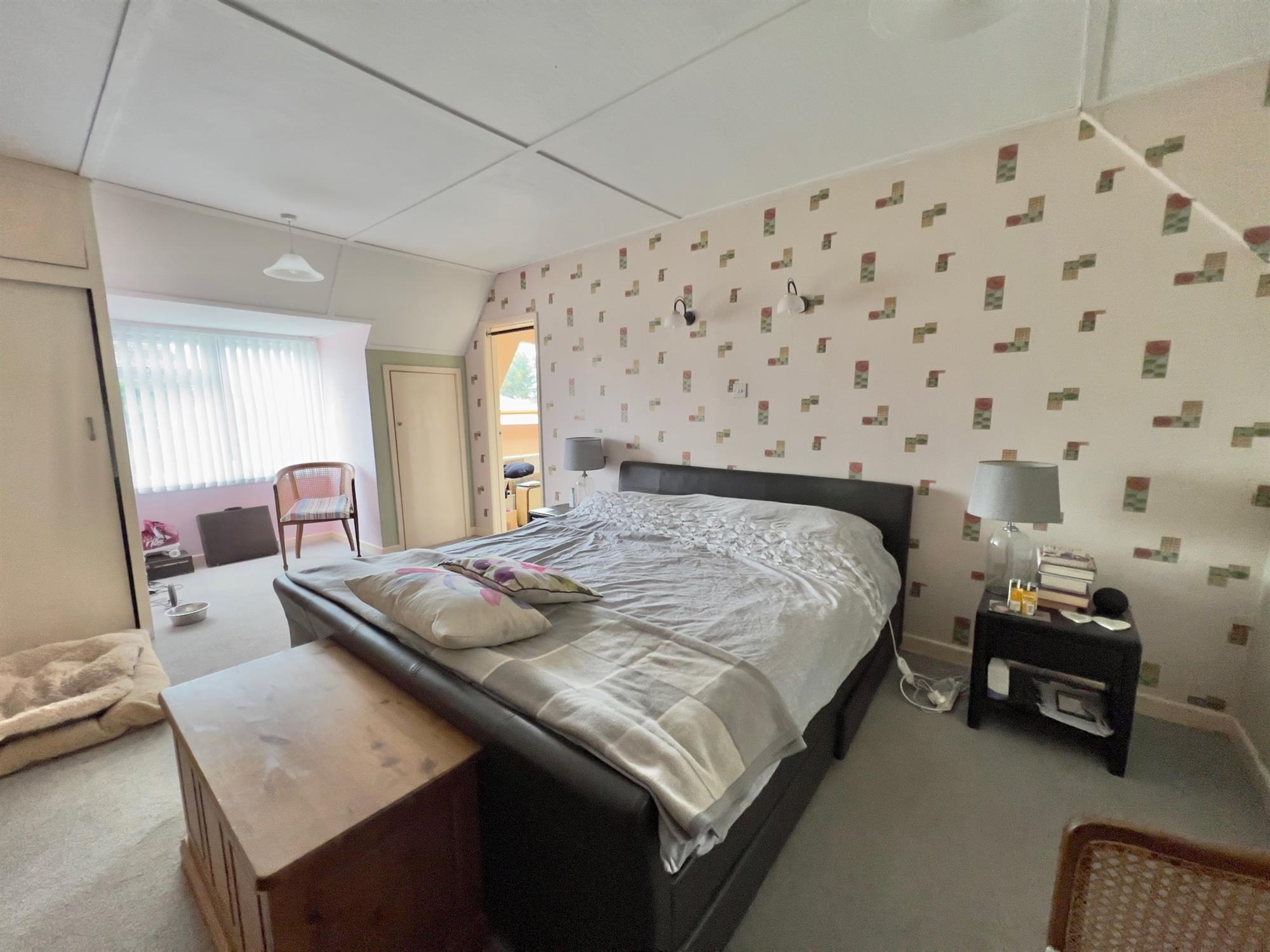 BEDROOM: 16' (4.88m) x 12' 4" (3.76m): Leaded double glazed window to side and to rear. Radiator. Built-in wardrobe. Door to...