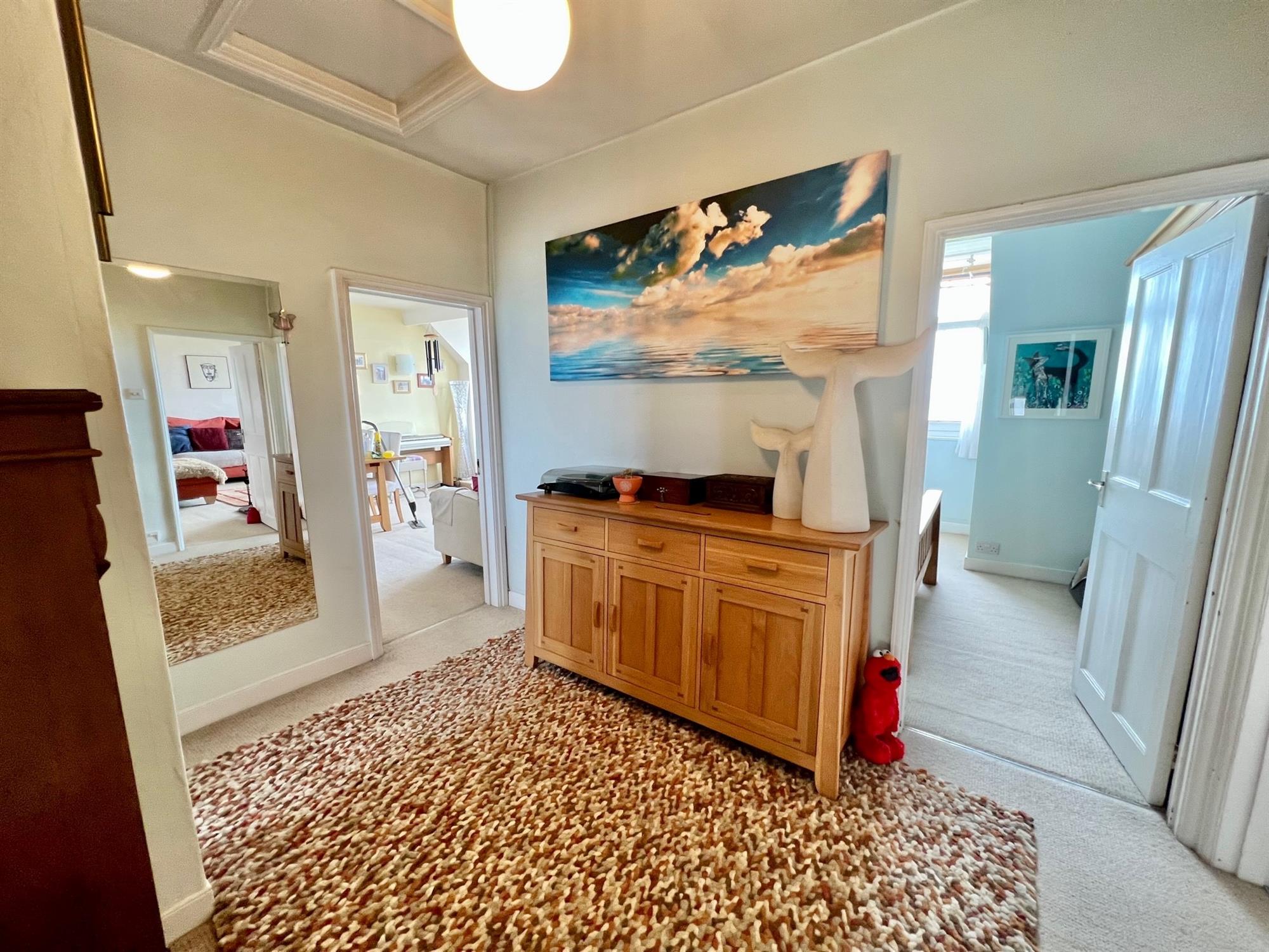 DESCRIPTION: Flat 6, Trefusis Terrace is a spacious penthouse apartment forming part of a grand period property which enjoys a wonderful position above Exmouth seafront. The property benefits from the most amazing 180 degree view across the Maer, Cricket Club, Bowling Club, Beach and out to sea and across to Dawlish Warren. The apartment faces South allowing the afternoon / evening sun in to all the principal rooms. Worthy of special mention is the outside storage; the apartment has a garage and private lockable shed, which is rare in this location, perfect for watersport and cycling enthusiasts. There is also a parking space in front of the garage as well as visitors parking.
