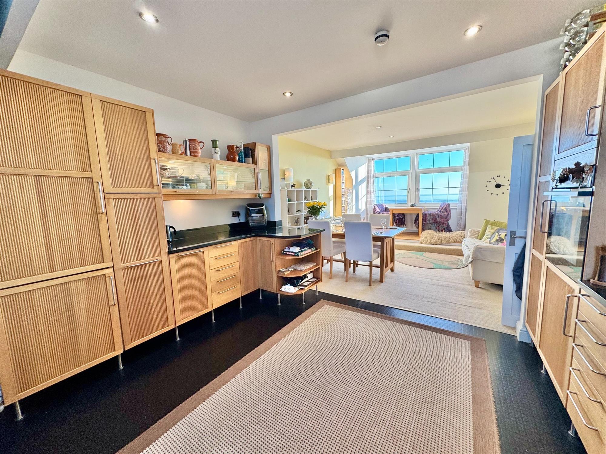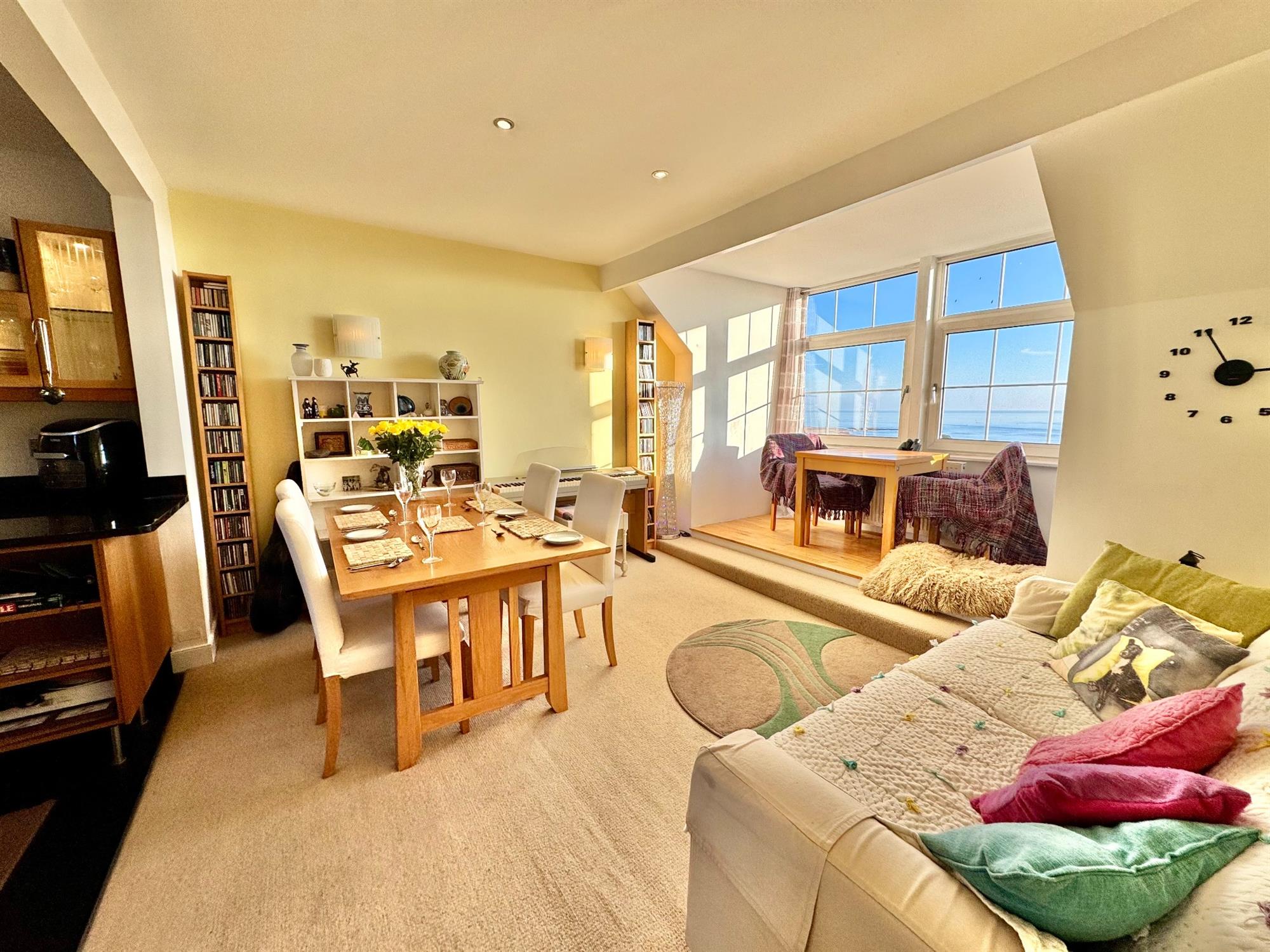 DINING AREA: 15' 4" (4.67m) x 12' 10" (3.91m): Two large fully opening double glazed windows to the front of the building with panoramic views across the Cricket Ground, Exmouth Beach, the sea and Dawlish Warren. Radiator. Opening through to the...