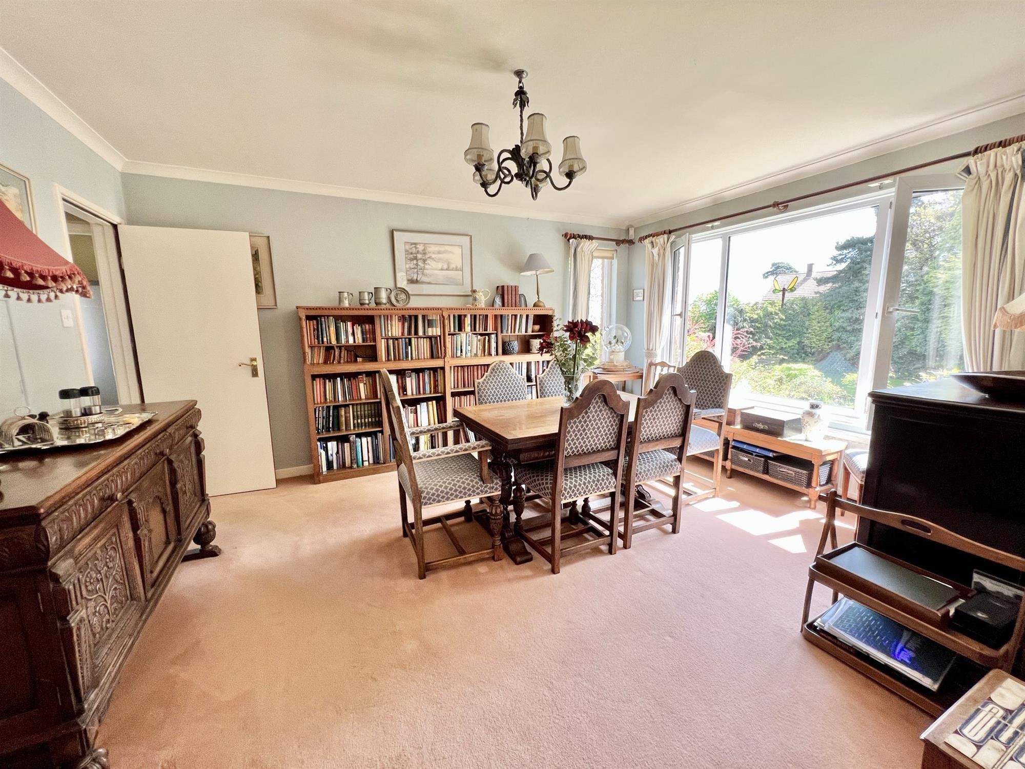 DINING ROOM 15' (4.57m) x 11' 10" (3.61m)Large double glazed window to the rear and to the side with stunning views. Serving hatch to the kitchen. Coved ceiling. Radiator. Door to:-