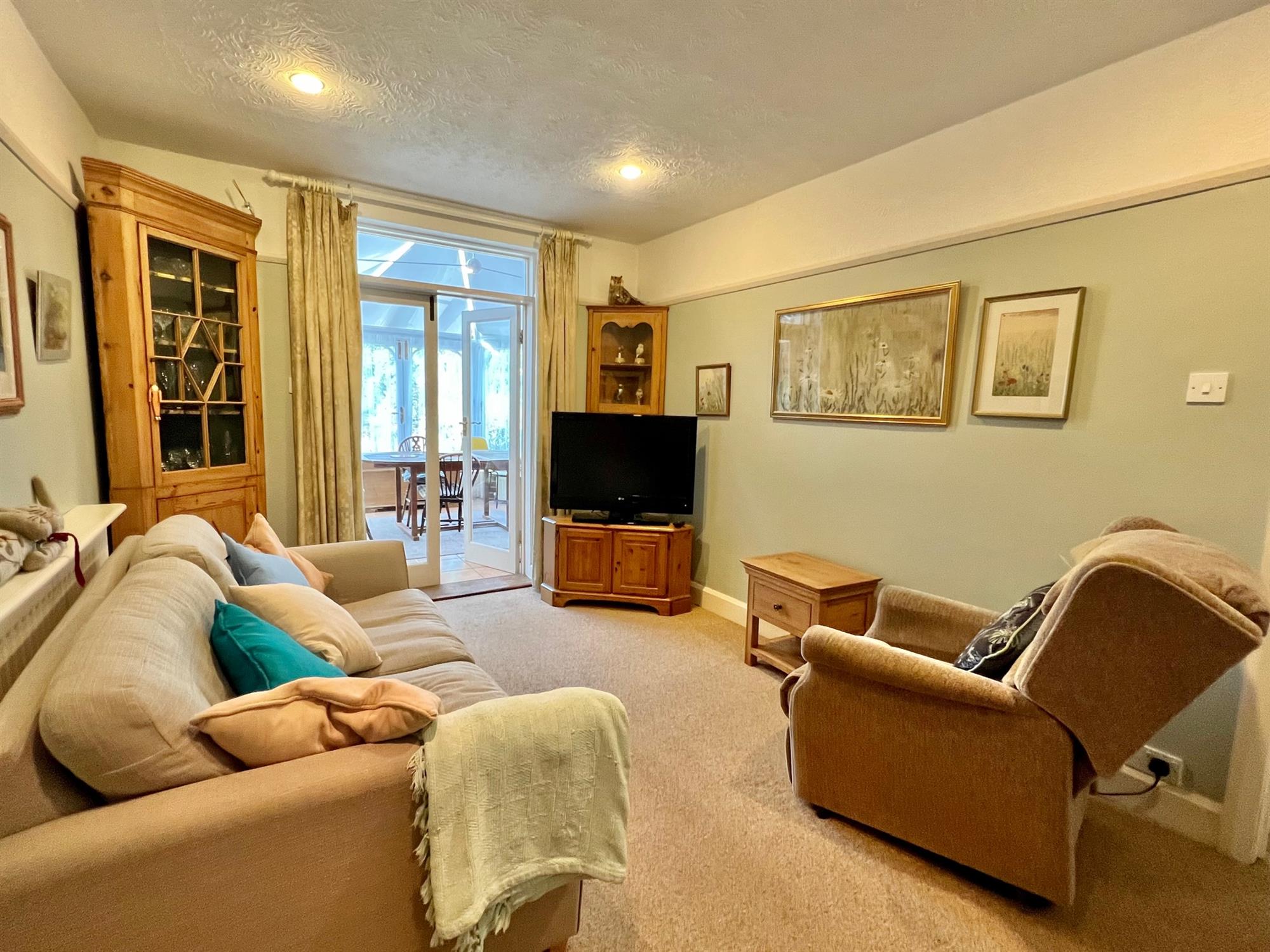 Picture rail. Downlighters. Radiator. Glazed double doors leading through to the Conservatory. Pine door to:-