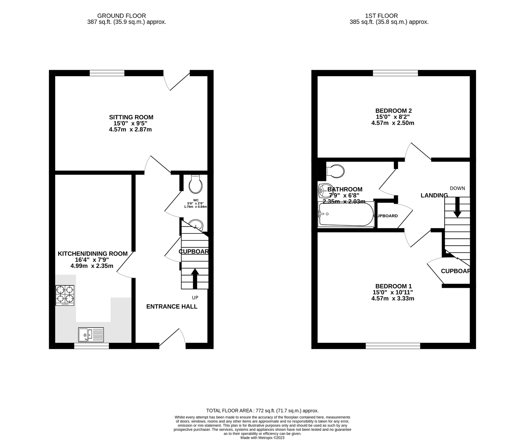Sitting Room, Kitchen/Dining Room, Cloakroom, 2 Double Bedrooms, Bathroom, Double Glazing, Central Heating.