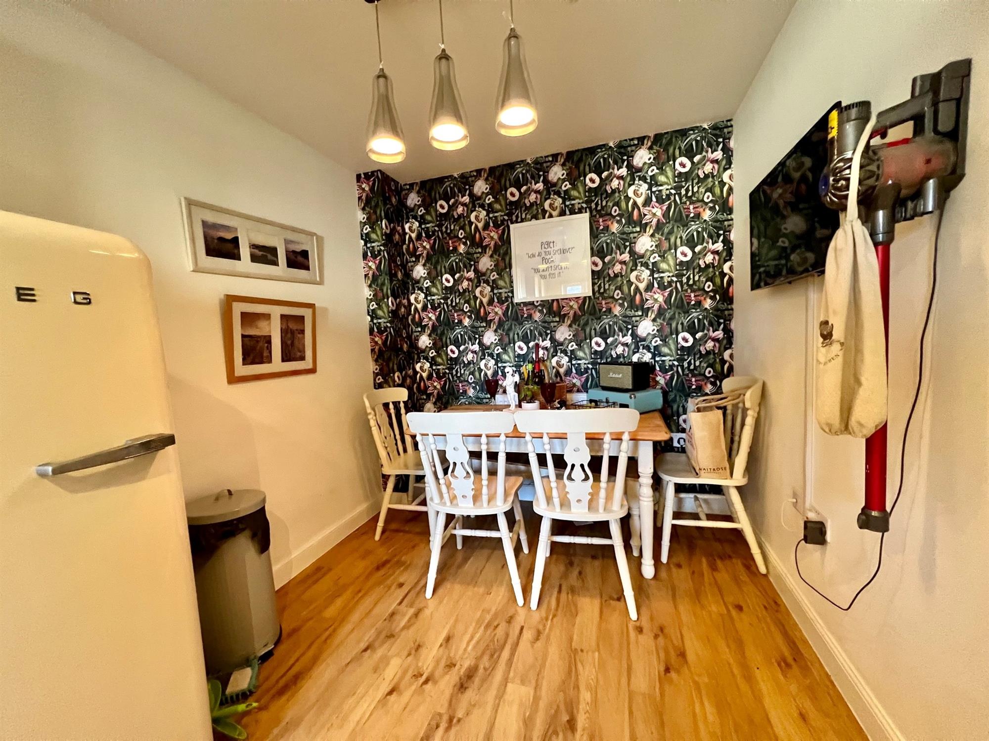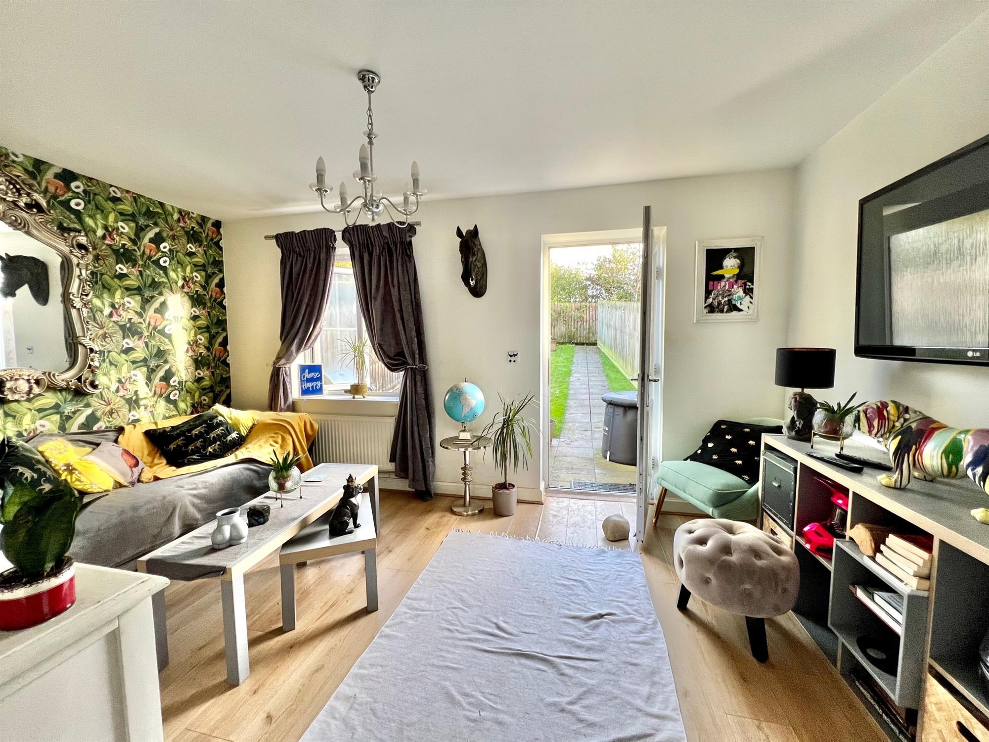 Double glazed window and double glazed door looking out onto the rear garden. Wood effect flooring. Radiator.