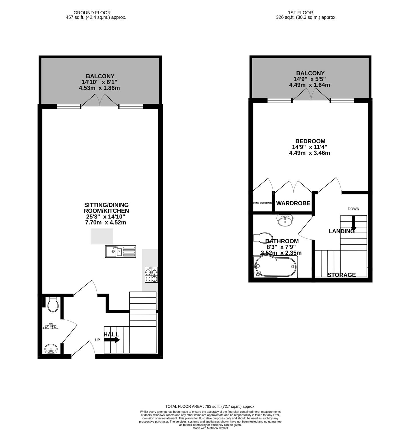 SECOND BALCONY 14'9 (4.49m) x 5'5 (1.65m)