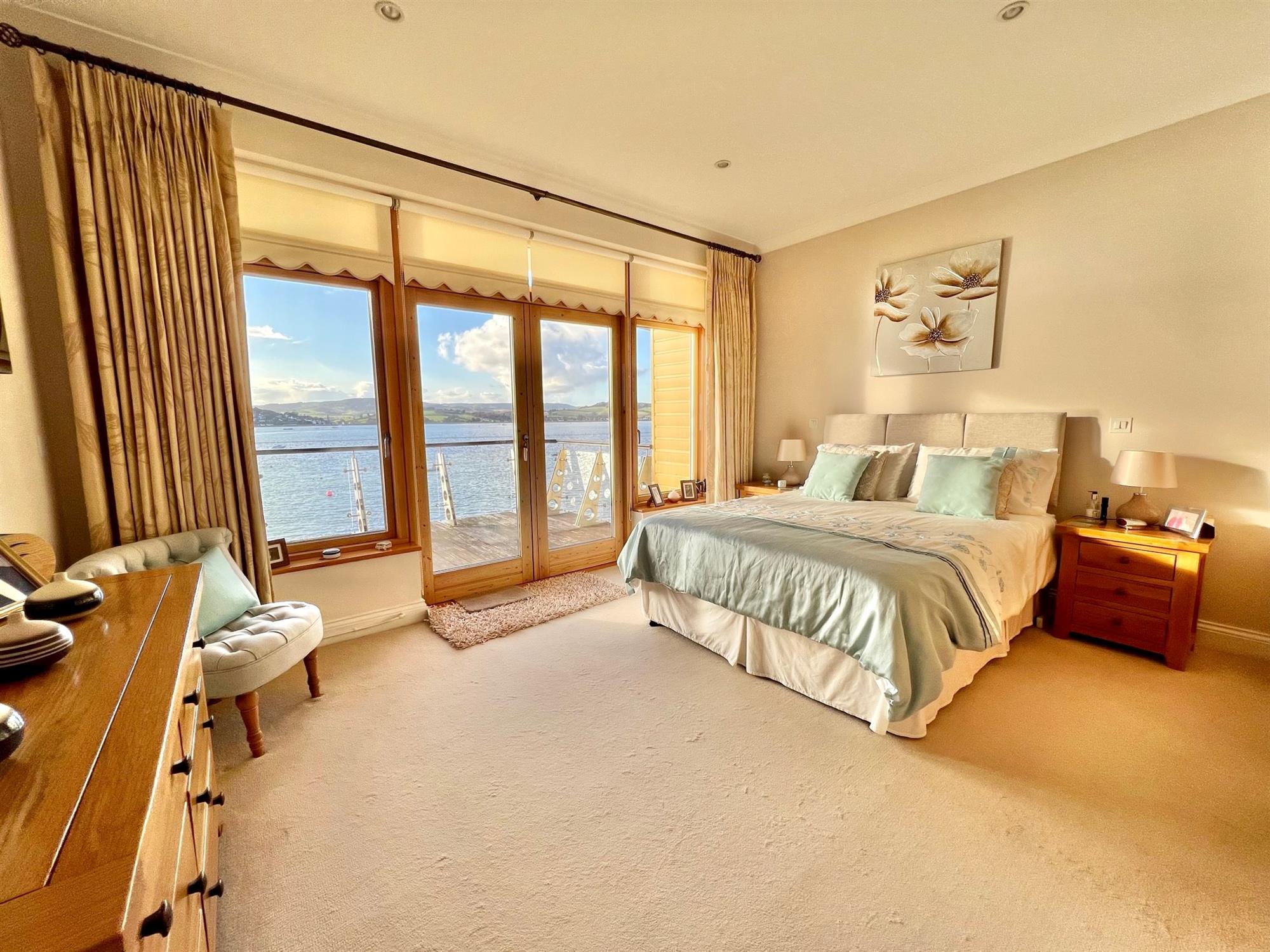 BEDROOM 1 18' 9" (5.71m) x 14' 10" (4.52m): A bright spacious room with double glazed windows and double glazed double doors leading onto the balcony with views over the Exe Estuary. Two double built-in wardrobes. Coved ceiling. Downlighters. Radiator. Door to...