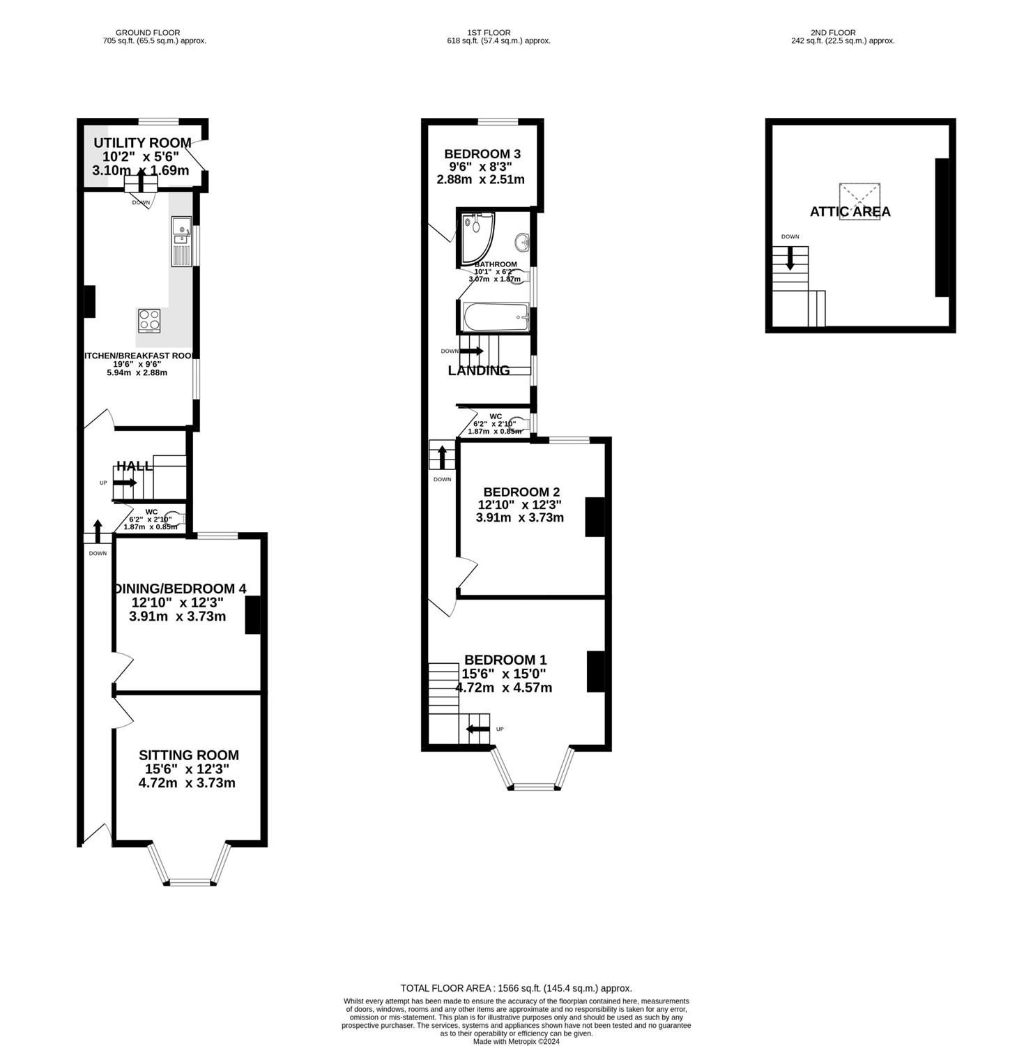 3 Double Bedrooms with stairs leading up from the master bedroom to a useful attic area (which could make a fantastic dressing room -subject to the necessary consents)