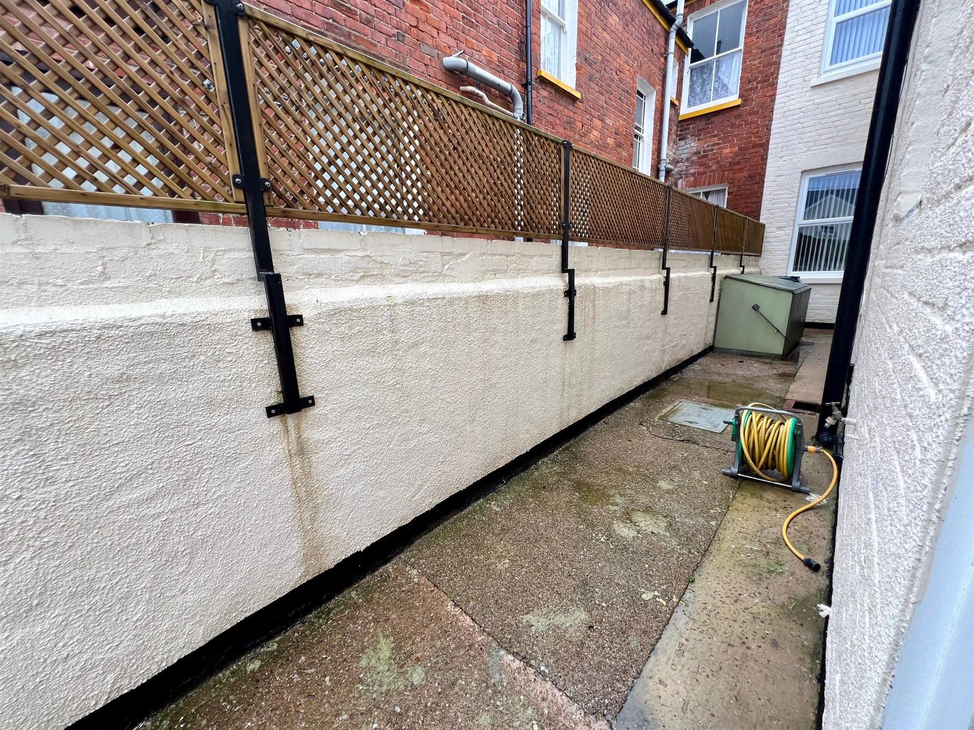 The REAR GARDEN is currently used for PARKING with a remote controlled electric roller door leading out onto the service road behind. The garden gets the afternoon and evening sun and could be used as garden space and / or parking.