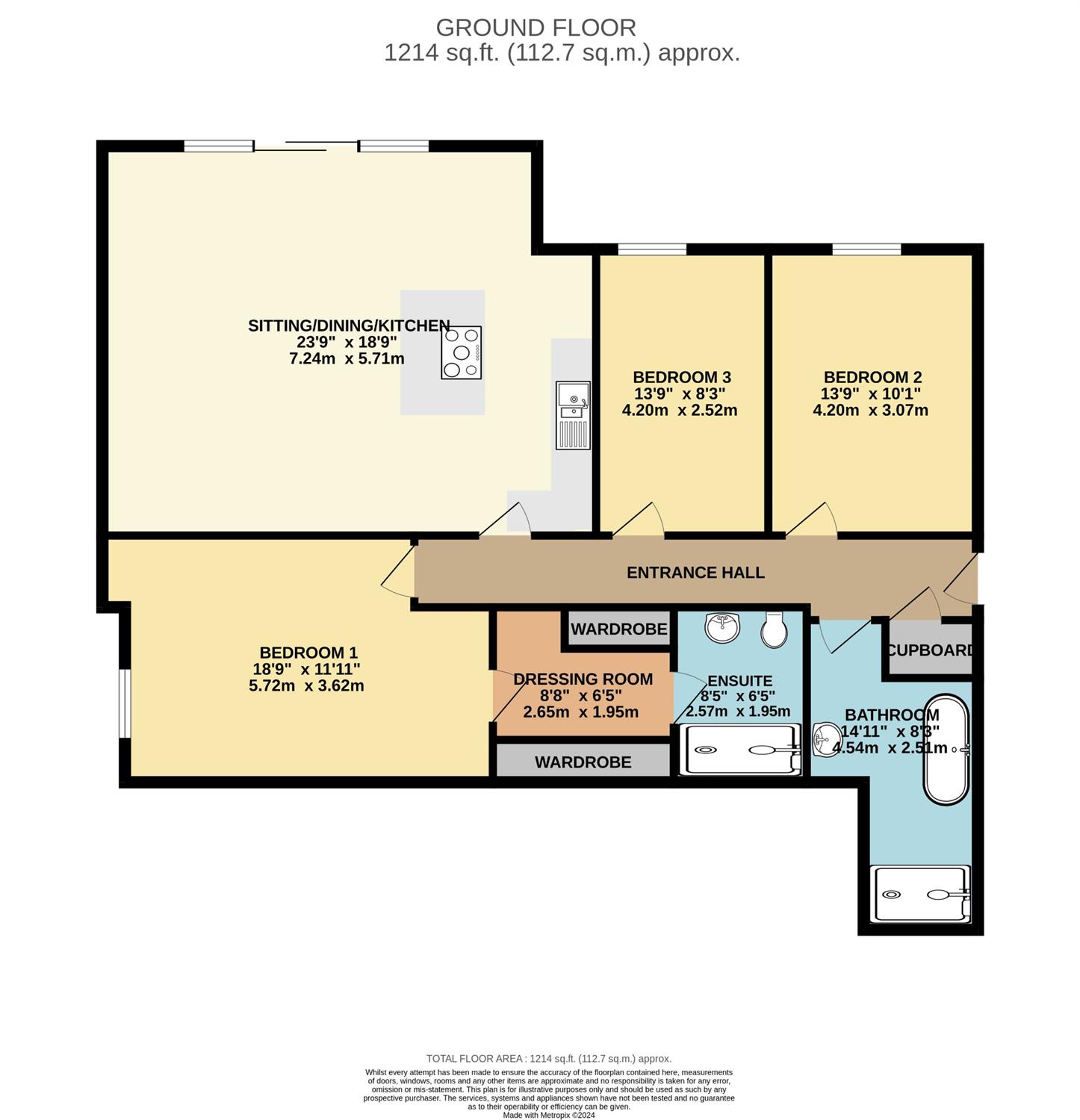 The accommodation comprises (all measurements are approximate):
