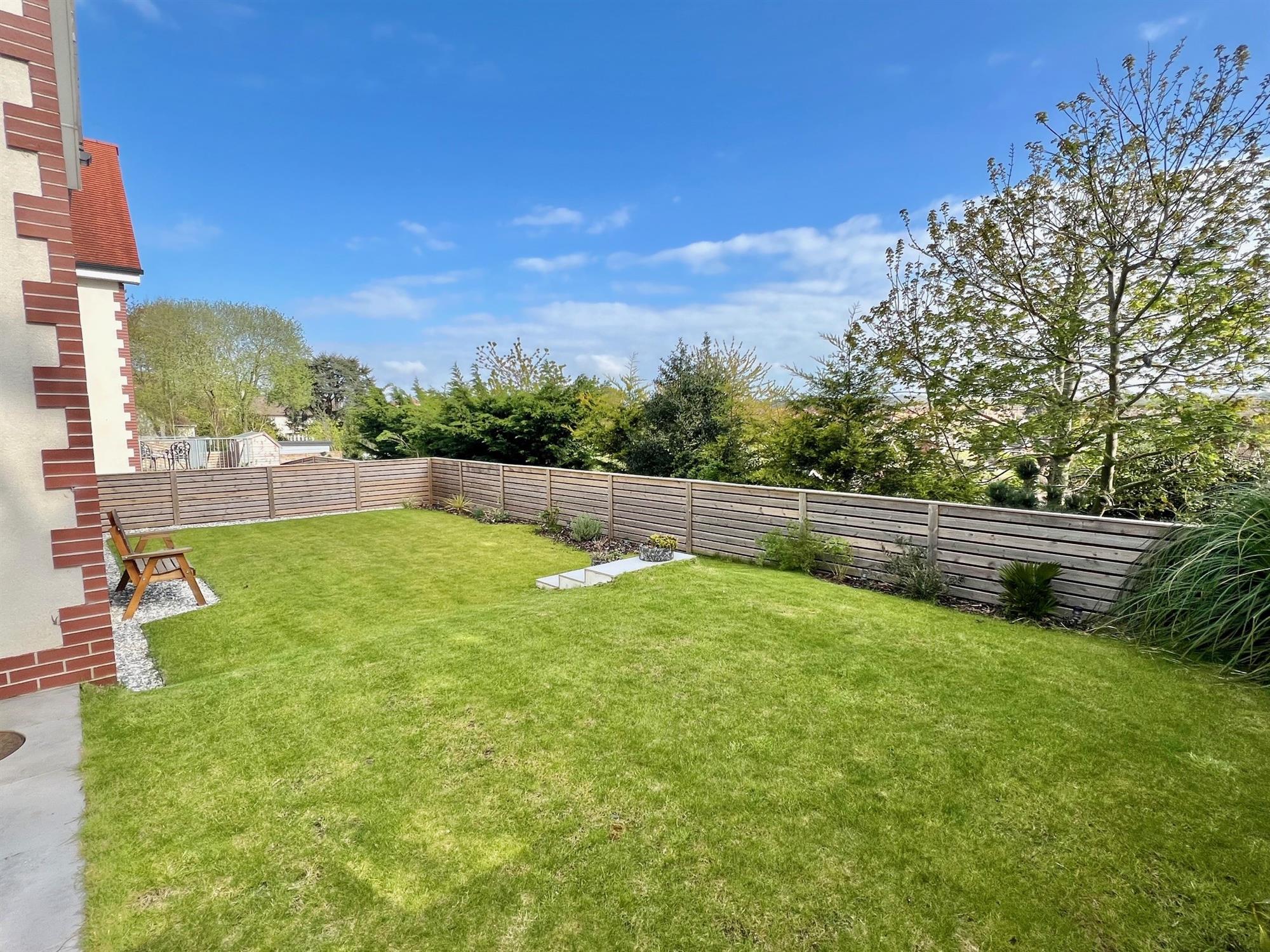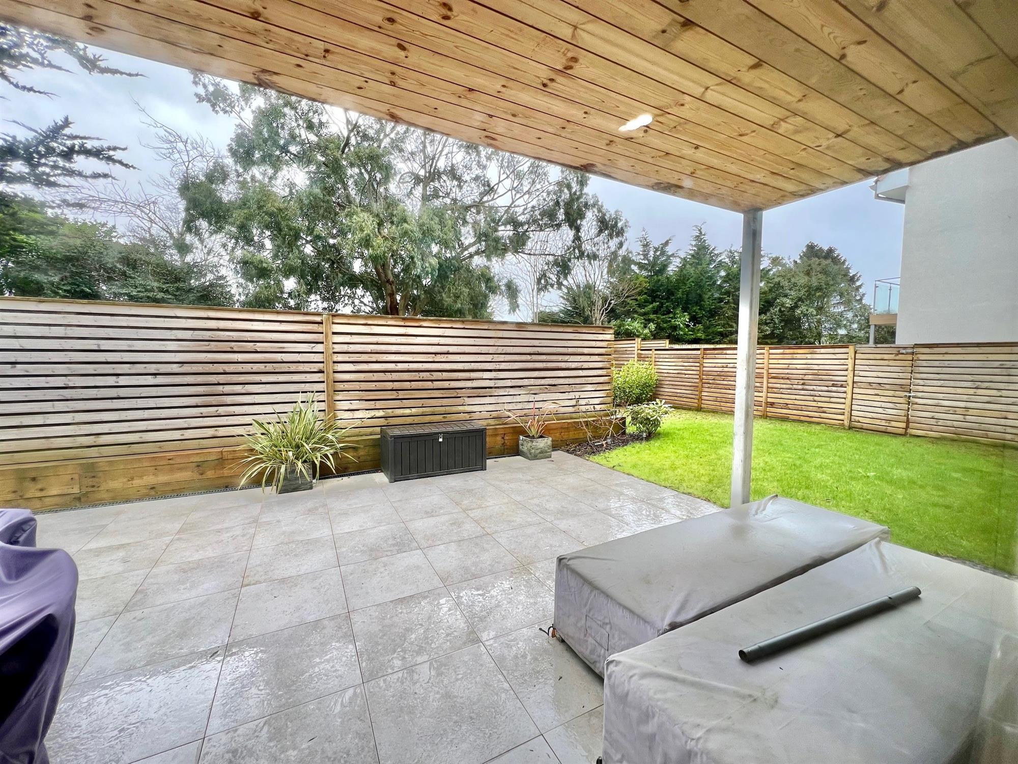 PRIVATE GARDEN with a large porcelain paved patio providing a large seating area, from here the garden extends onto two areas of lawned garden all with a fence enclosure and facing in a South-Westerly direction.