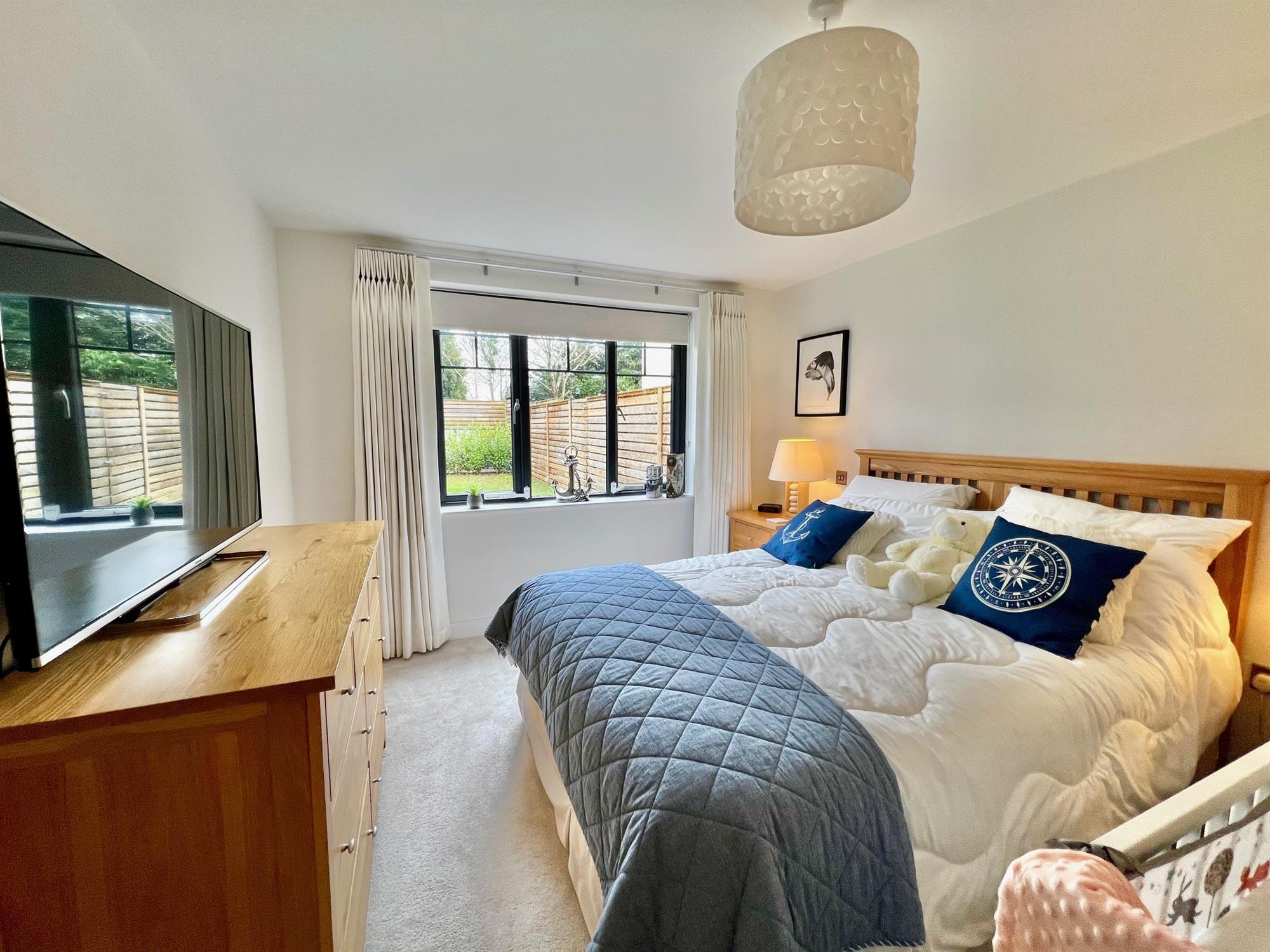 BEDROOM 118' 9" (5.71m) x 11' 11" (3.63m): A large master bedroom with a double glazed window to the side overlooking your own garden. Downlighters. Underfloor heating. Door to...