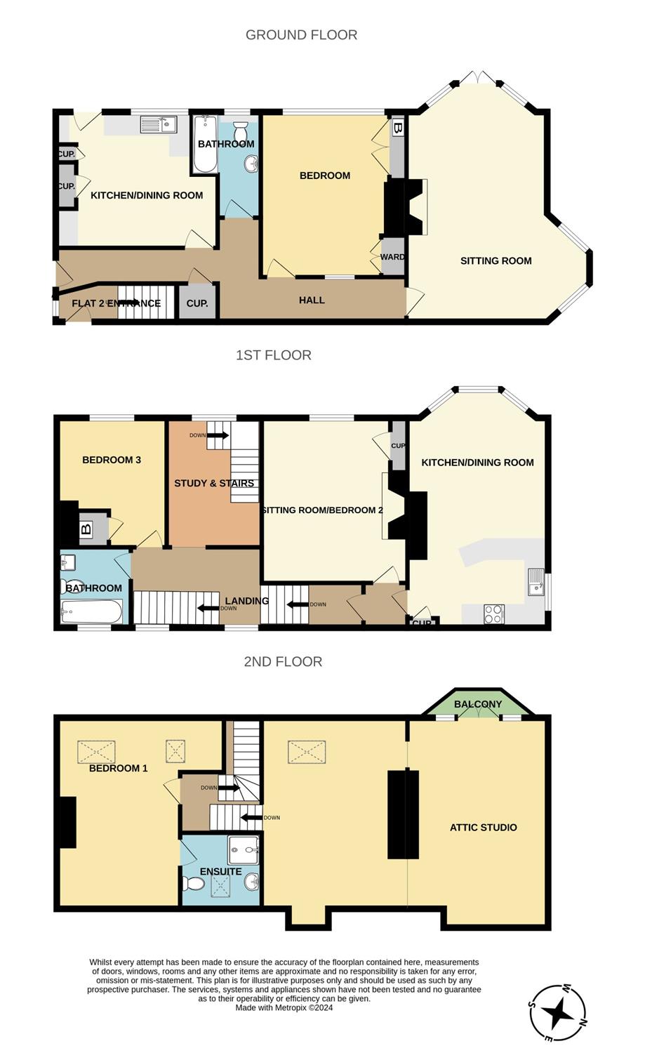 Second floor - Large attic Studio with a balcony enjoying some distant sea views,