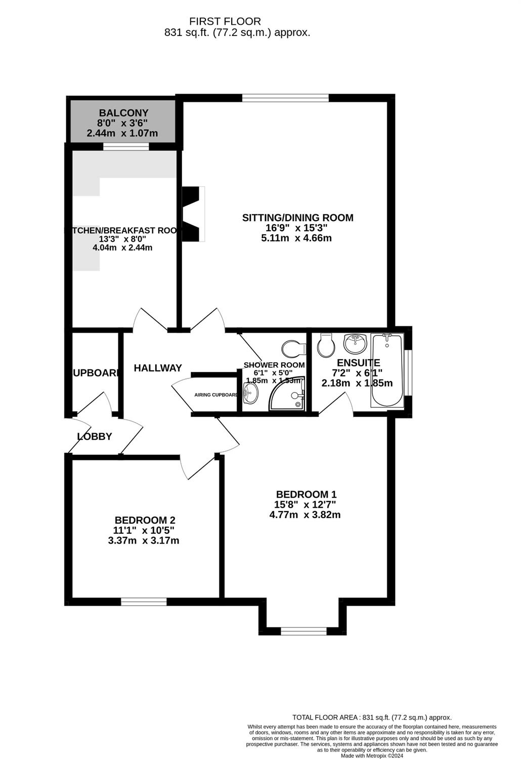 Purpose built first floor apartment with balcony, communal gardens & garage,
