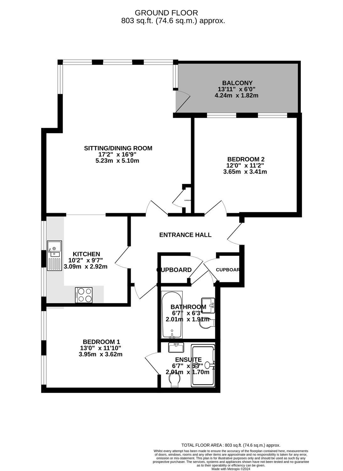 Balcony13' 11" (4.24m) x 6' (1.83m)