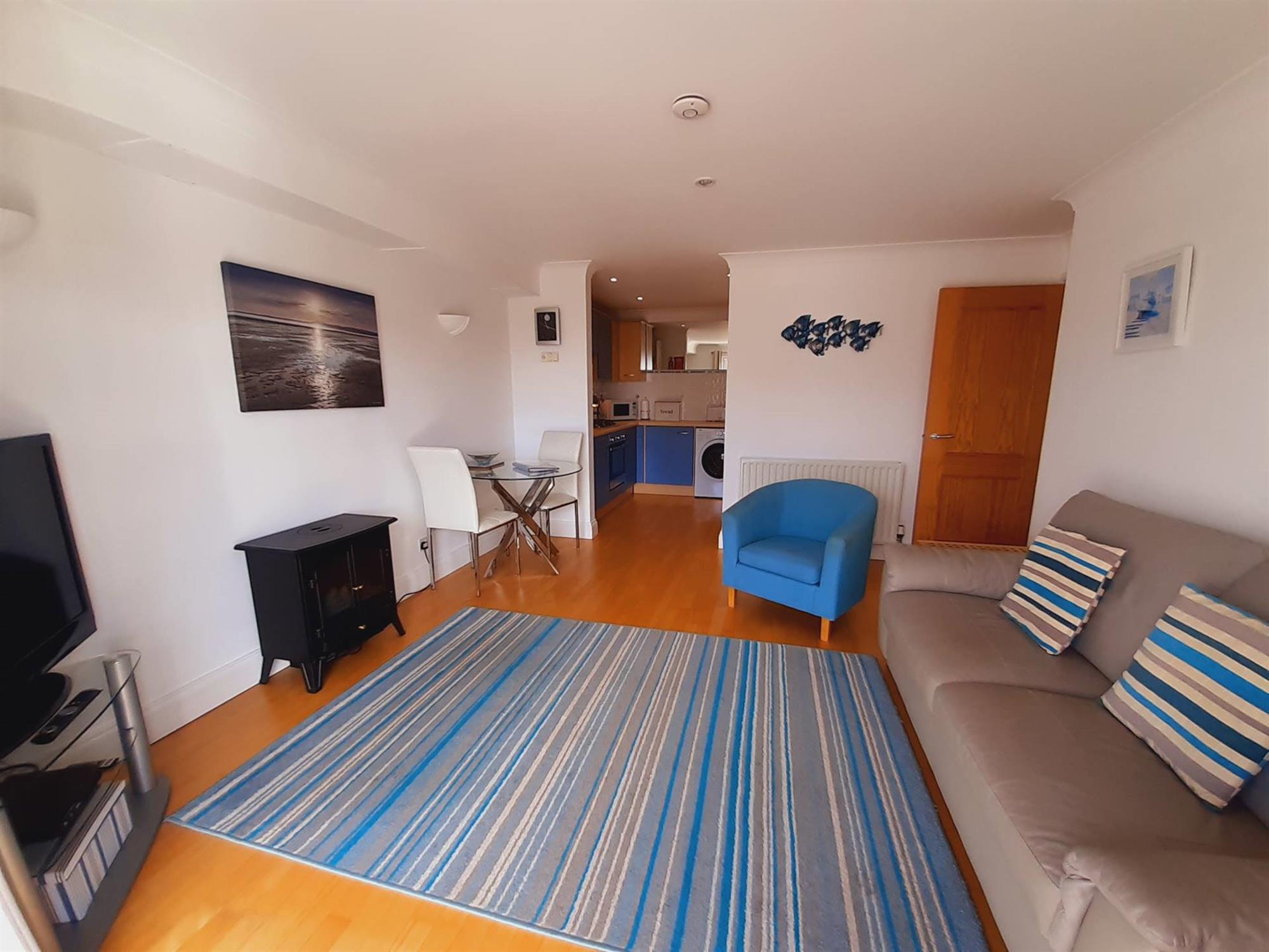 LOUNGE/DINING ROOM 13'3 (4.04m) max x 12'9 (3.88m)A most attractive bright and light room with stunning views of the marina, estuary and coastline beyond. Double glazed French double doors leading out onto the balcony. Solid wood engineered flooring. Television point. Telephone point. Recessed ceiling spot lights with additional wall lights. Radiator. Opening to:-