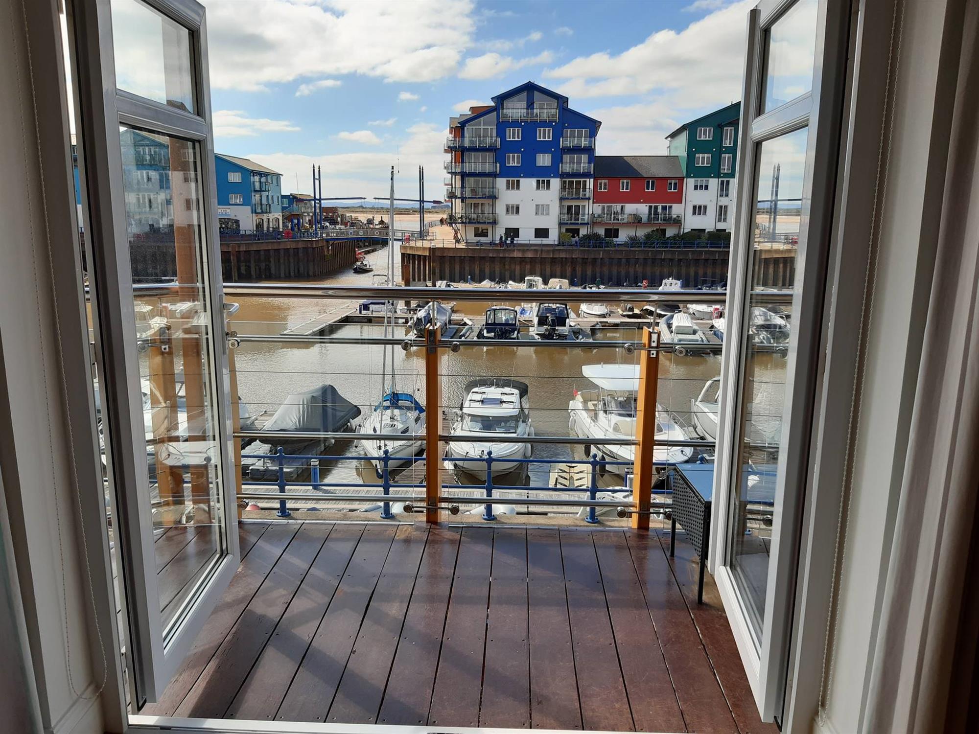 BALCONYSuperb views over the marina and coastline beyond. Courtesy lighting. Glazed balustrade with chrome roller bar. Wooden decked floor.