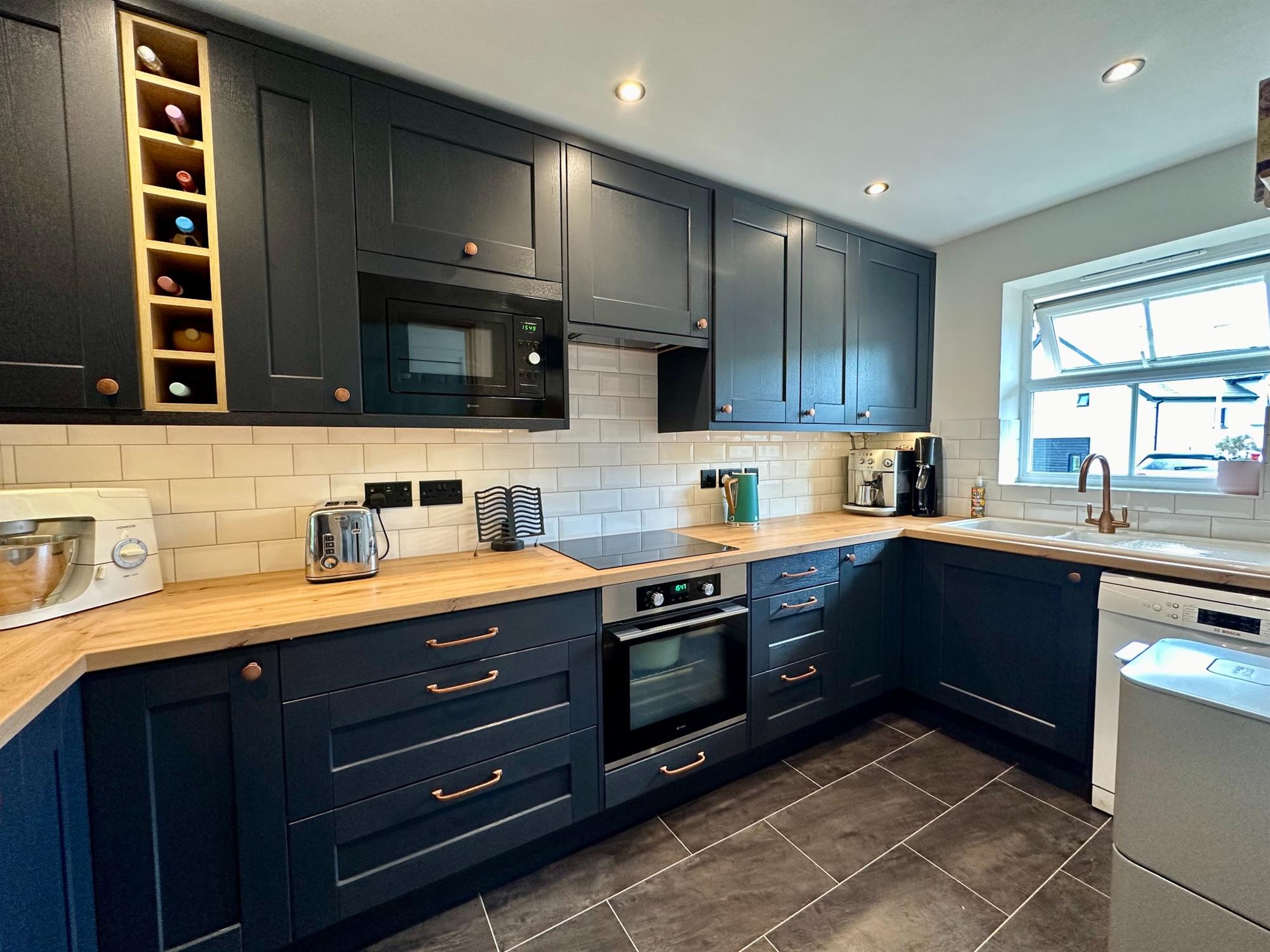 KITCHENThe beautiful kitchen has recently been fitted from 'System 6' kitchens. Dark blue 'Shaker' style wall and