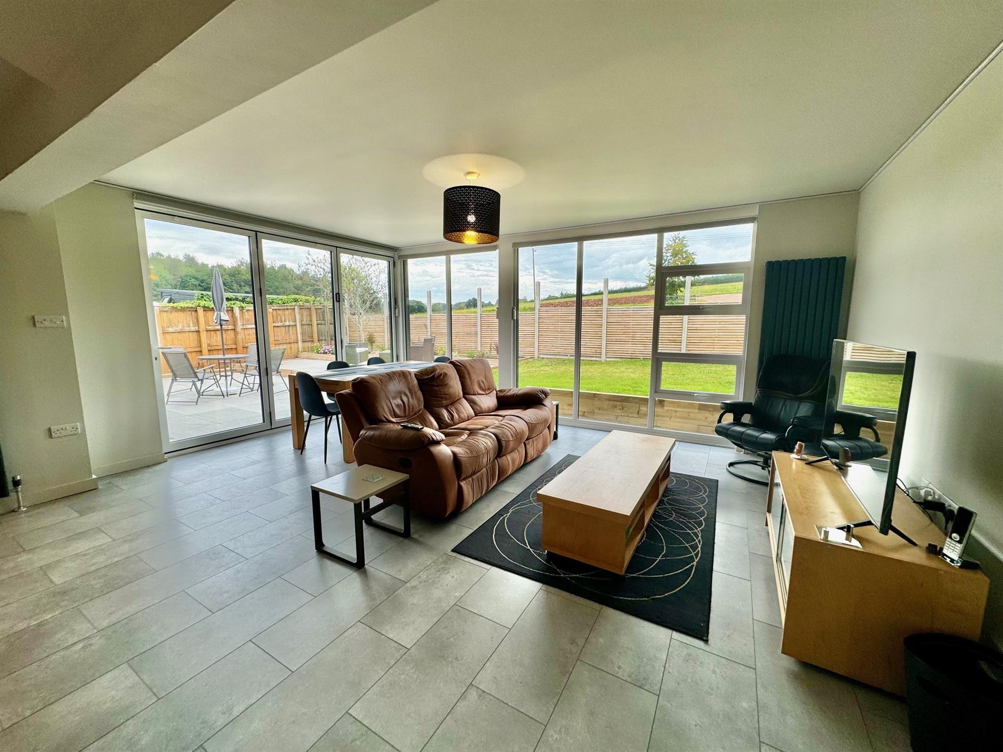 Triple glazed bifold doors leading out to one side. Triple glazed windows to the rear. Tiled effect floor. Tall runged radiator. Stairs lead up to snug/livingroom room. Door to large double garage garage. Door to cloakroom. Door to...