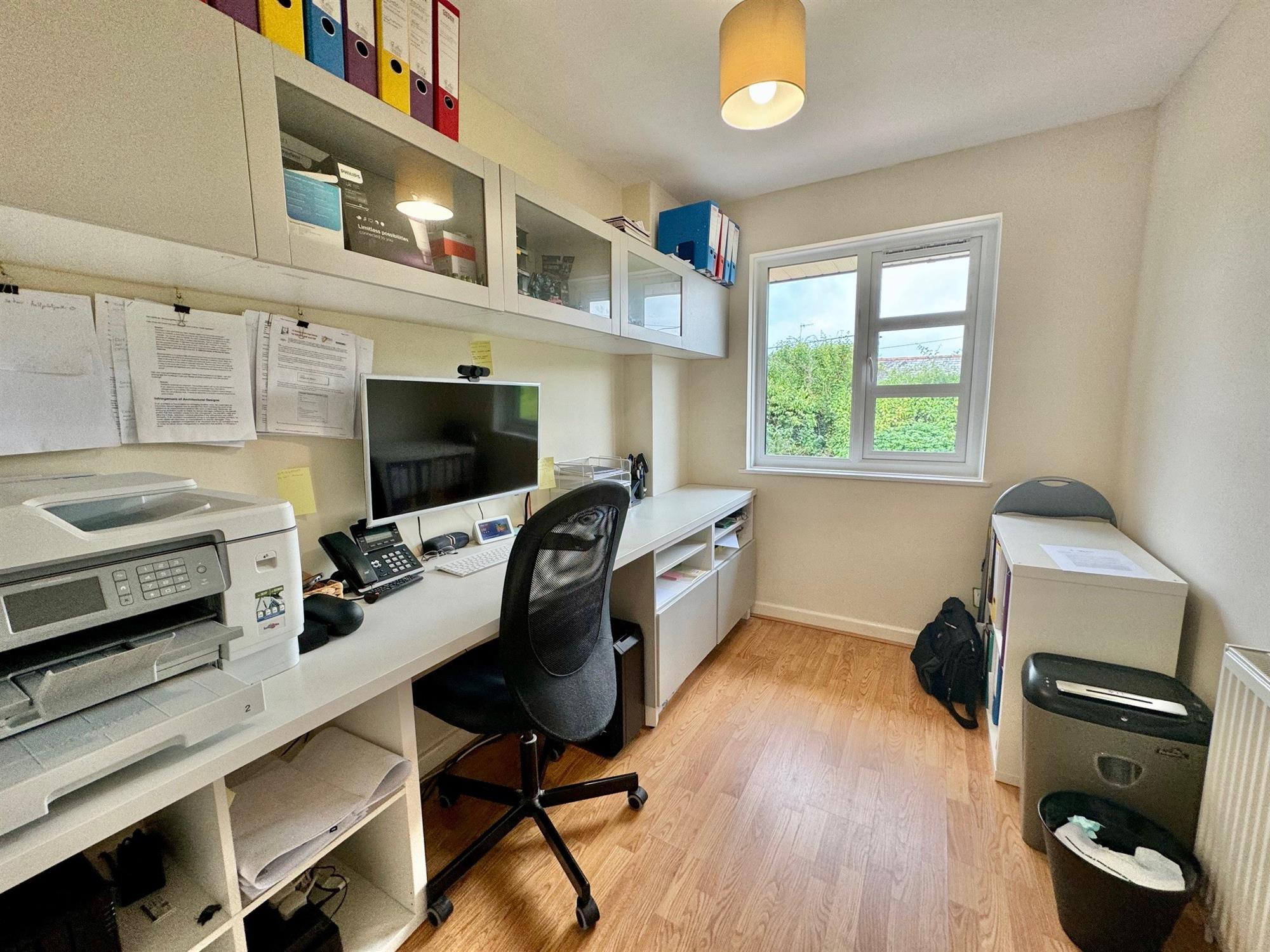 Triple glazed window to front. Fitted desk unit with storage under and some wall mounted storage. Wood effect flooring. Radiator.