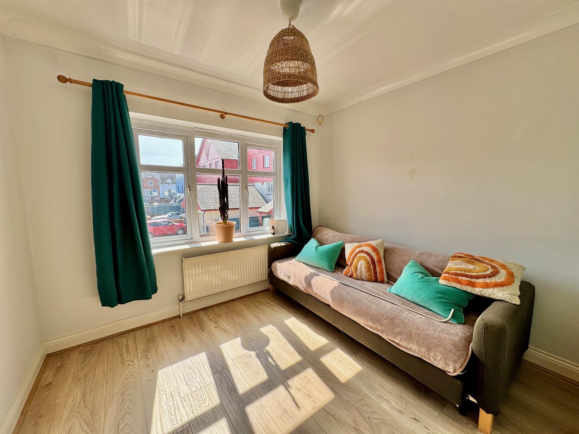 BEDROOM 29' 9" (2.97m) x 8' 7" (2.62m): Double glazed window to front. Coved ceiling. Wood effect flooring. Radiator.