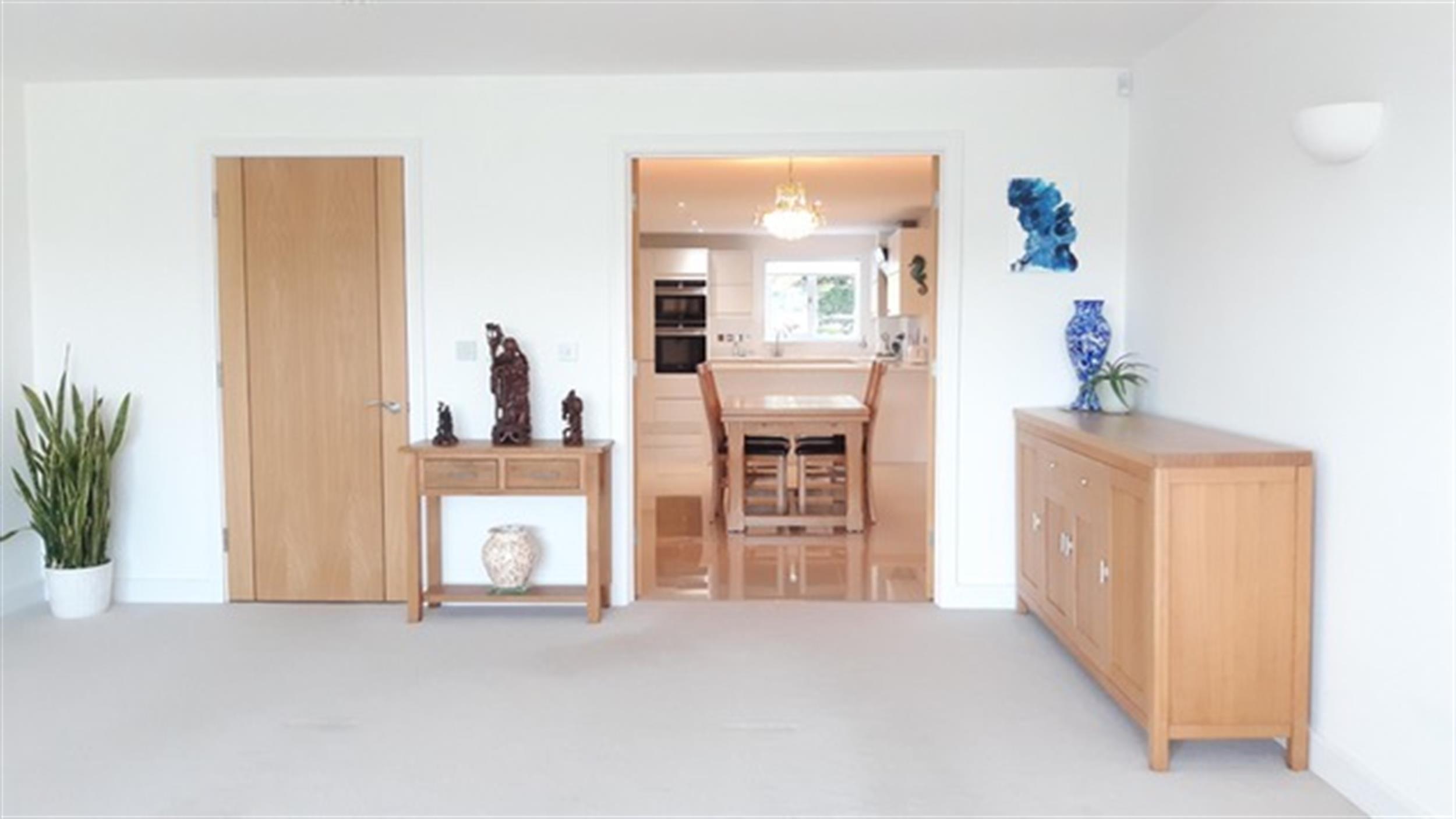 SITTING ROOM 23' 2" (7.06m) x 16' 7" (5.05m)A large and bright spacious room with four double glazed windows to the rear overlooking the Maer Valley and up towards Foxholes. Underfloor heating. Glazed double doors to the kitchen/Dining room. Double glazed double doors to:-