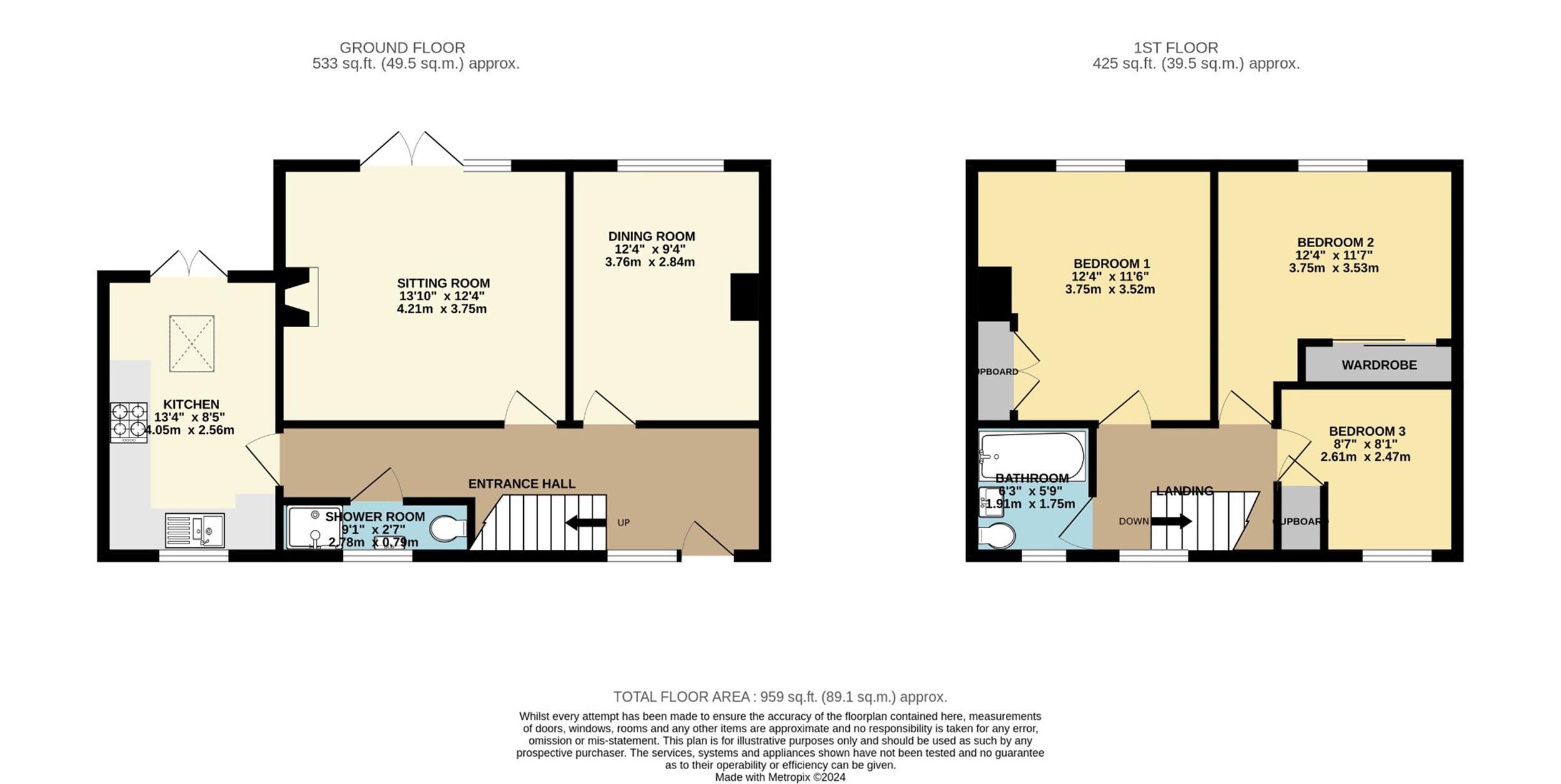 SHOWER ROOM:9' 1" (2.77m) x 2' 7" (0.79m):