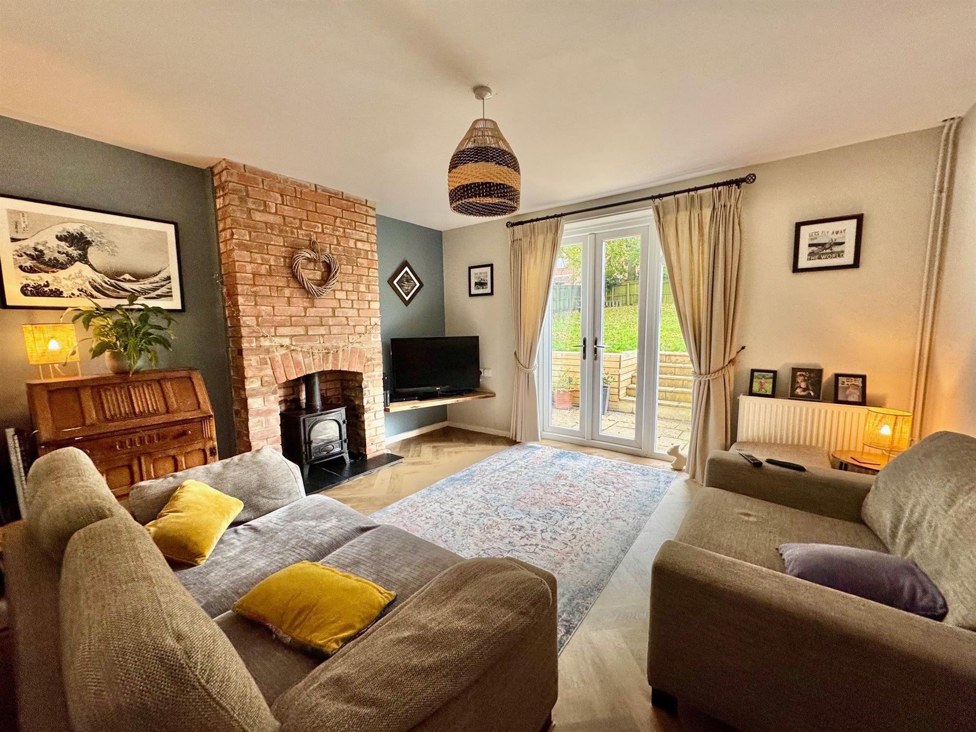 Double glazed double doors and double glazed window leading out onto the rear garden. Feature exposed brick fireplace with a cast iron stovax wood burner on a slate hearth. Radiator.