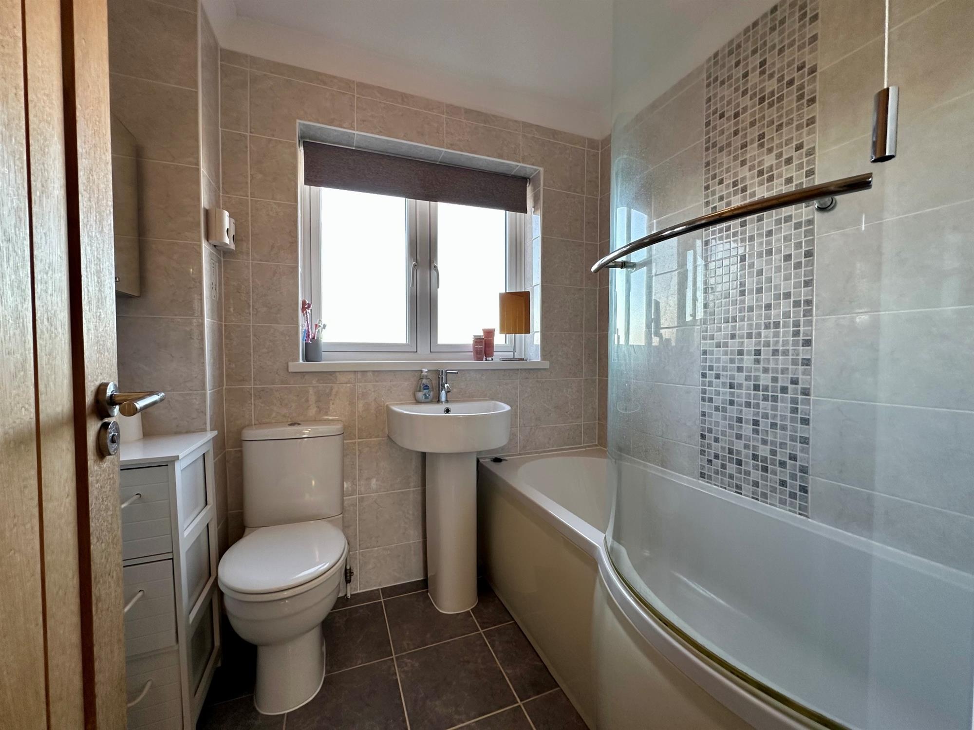 Well appointed bathroom/w.c. with an electric shower over the bath
