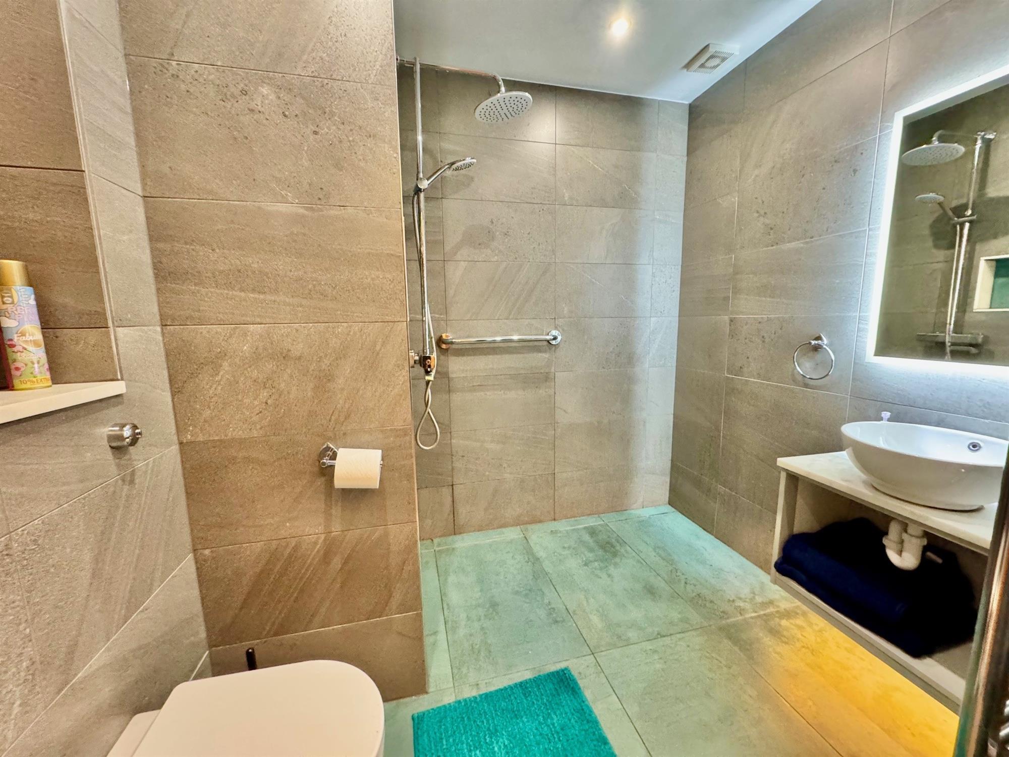 SHOWER ROOM7' 9" (2.36m) x 6' 1" (1.85m): White suite comprising closed flush low level WC. Circular wash hand basin set on a marble top with mixer tap and storage under. Walls in full tiled surround. Open walk-in wet room style shower with recessed shelf and twin headed shower unit. Back-lit LED mirror. Chrome runged radiator. Walls in full tiled surround. Downlighters. PIR lighting. Extractor fan.