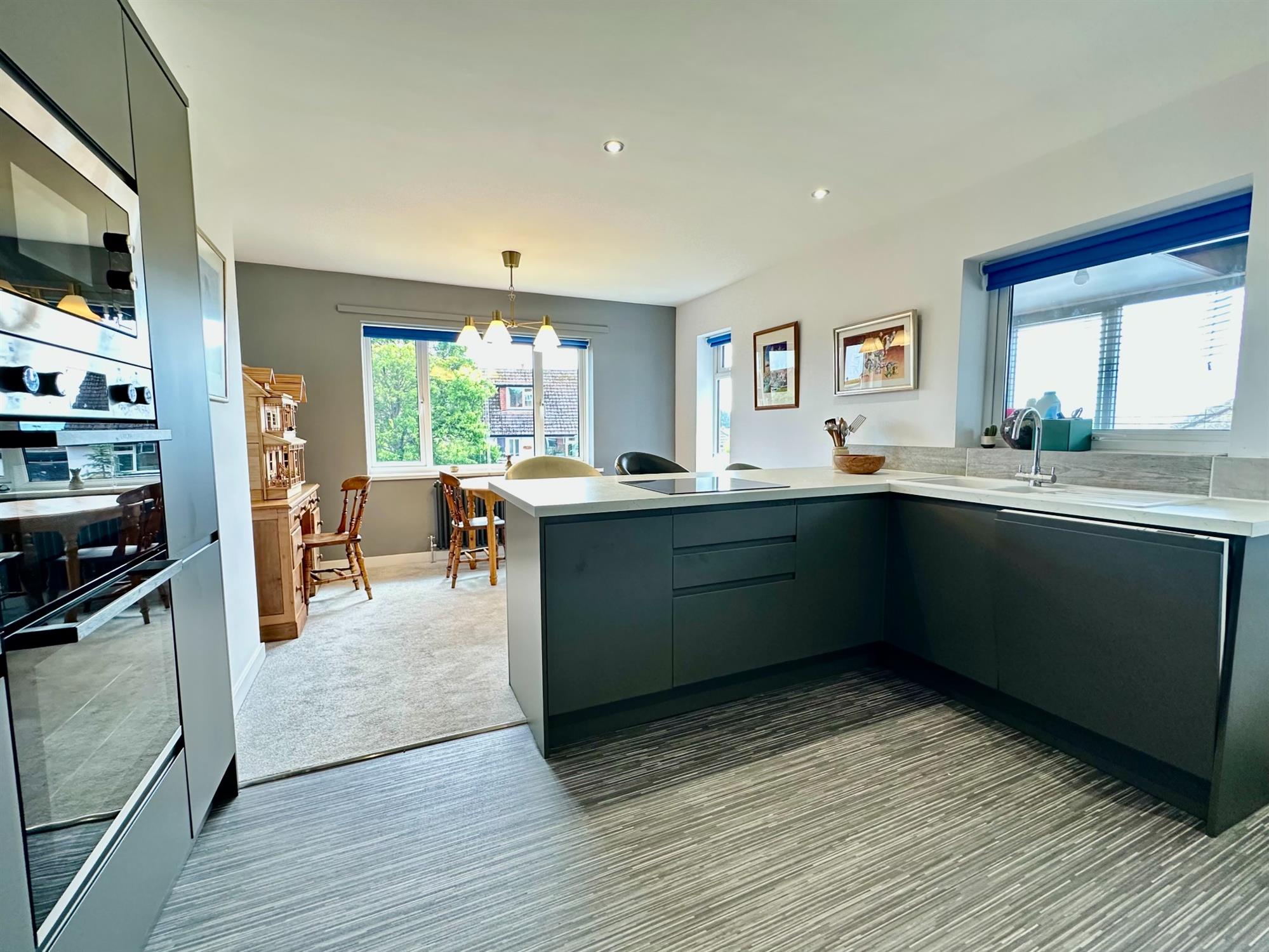 In more detail…Situated on a large corner site is this detached bungalow with a large garden offering lots of parking space. The bungalow has been thoroughly modernised throughout and benefits from double glazing and gas central heating/hot water supplied by an energy efficient condensing combination boiler. An enclosed entrance porch with a large cloaks’ cupboard leads to the reception hall and inner hallway with doors to all the principal rooms. These include a fine twin aspect sitting room with a feature bay window, spacious modern kitchen with an integrated induction hob, fan assisted oven and microwave. Leading off the kitchen/dining room is a useful sun room/utility area. There is a well-appointed bathroom/w.c. having a shower over the bath and three well-proportioned bedrooms with the main bedroom enjoying a built in double wardrobe as well as a modern en suite shower room/w.c. Another feature includes some fine distant views of the River Exe Estuary and Haldon Hills. There is also a garage, and the property is being sold with no onward chain.
