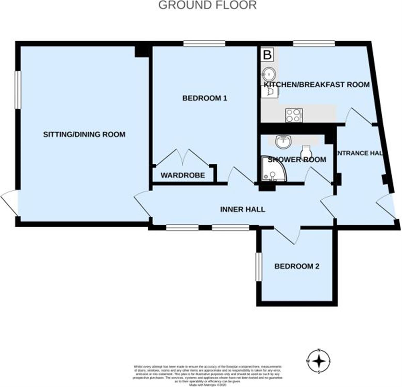 Flat 1, Church View House is a generous and well-proportioned, well-presented two bedroom ground floor flat which benefits from a very long lease and share in the Freehold Title to Church View House. In particular the property not only enjoys use of the superb communal gardens overlooking the church grounds but also has its own private South-Westerly facing enclosed patio courtyard which is ideal for summer dining, barbeques and extra storage space for bikes and such. With neutral colour schemes throughout and lots of windows the flat presents an airy environment and would be ideal for buyers seeking a low-maintenance home all on one level with great ‘lock-up and leave’ potential also suitable as a permanent home for those with busy lives. Equally anyone seeking to find accommodation in the village all on one level would be well advised to view. The flat has been greatly improved by the present owner with the addition of a newly fitted kitchen/breakfast room having some built-in appliances and a well-appointed shower room/wc. The remainder of the accommodation features a large sitting/dining room and two excellent size bedrooms with the main bedroom having a built-in double wardrobe. The property also has its own private parking space.