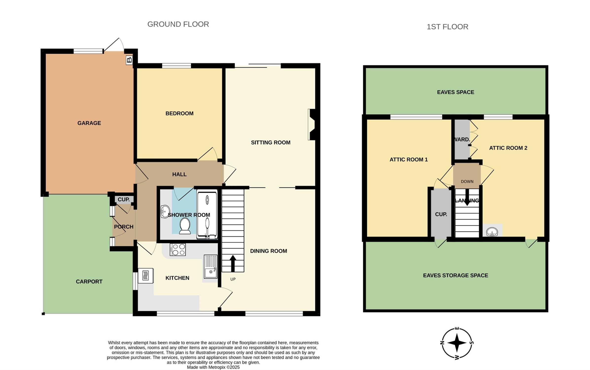 * Ground floor bedroom and two first floor attic rooms