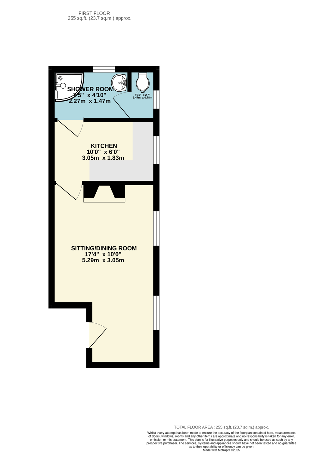 Flat 1: Bed/sitting room, kitchen, bathroom/WC.